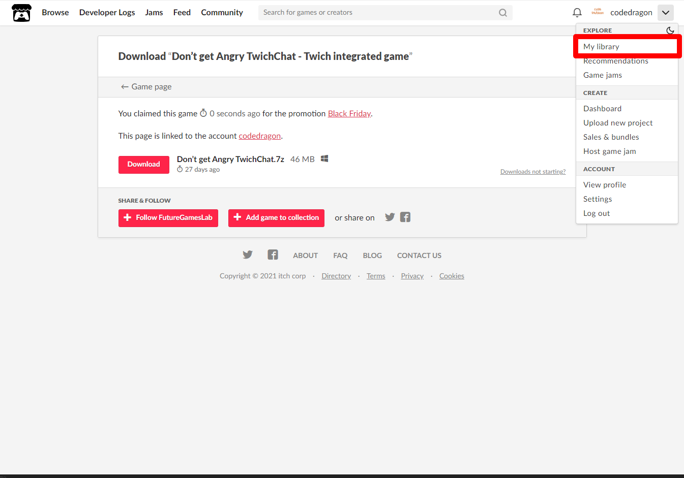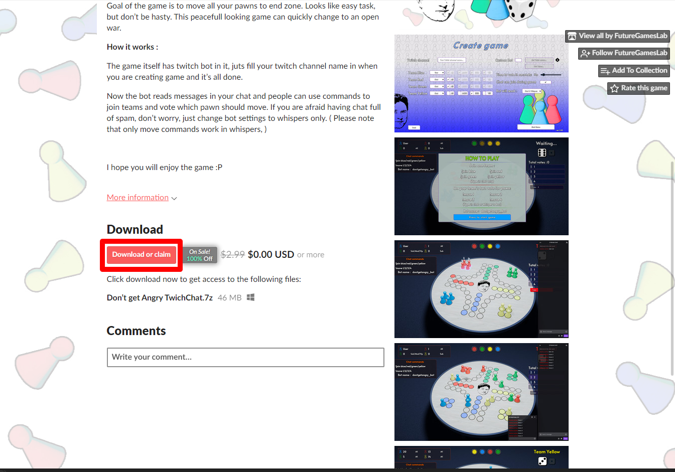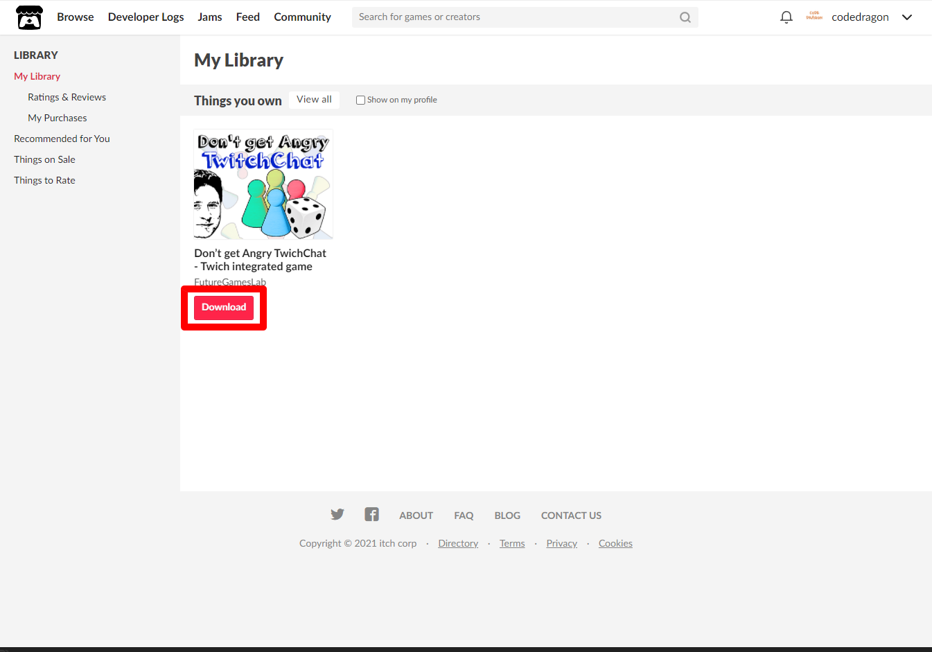 "My Lirary"에서 방금 받은 "Don’t get Angry TwichChat" 게임 항목을 확인할 수 있습니다.