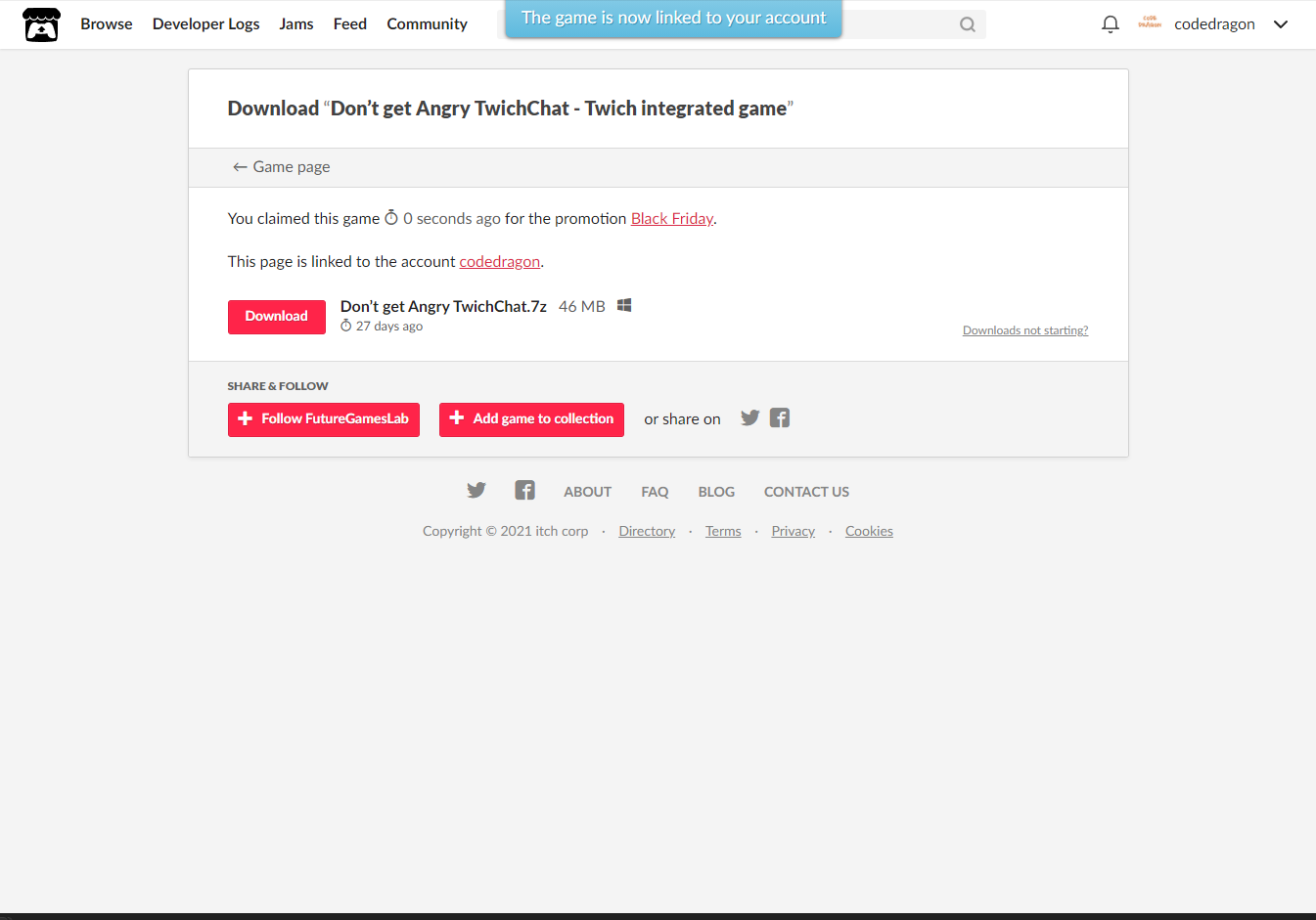 "Don’t get Angry TwichChat" 해당 항목에 있는 [Download] 버튼을 클릭하면 게임의 설치파일을 다운받을 수 있습니다.