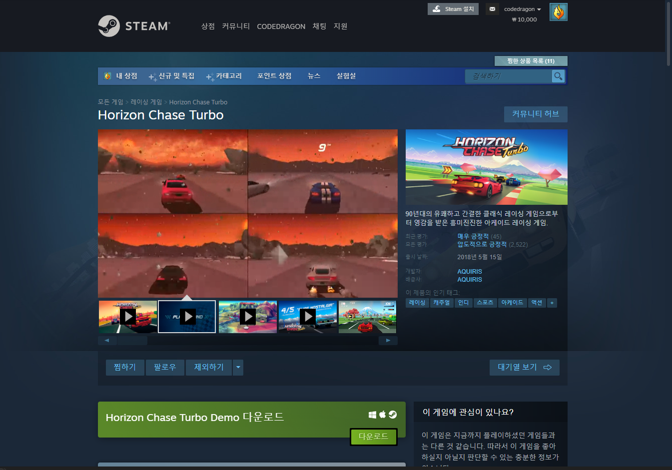 "Horizon Chase Turbo"게임페이지에 접속합니다.