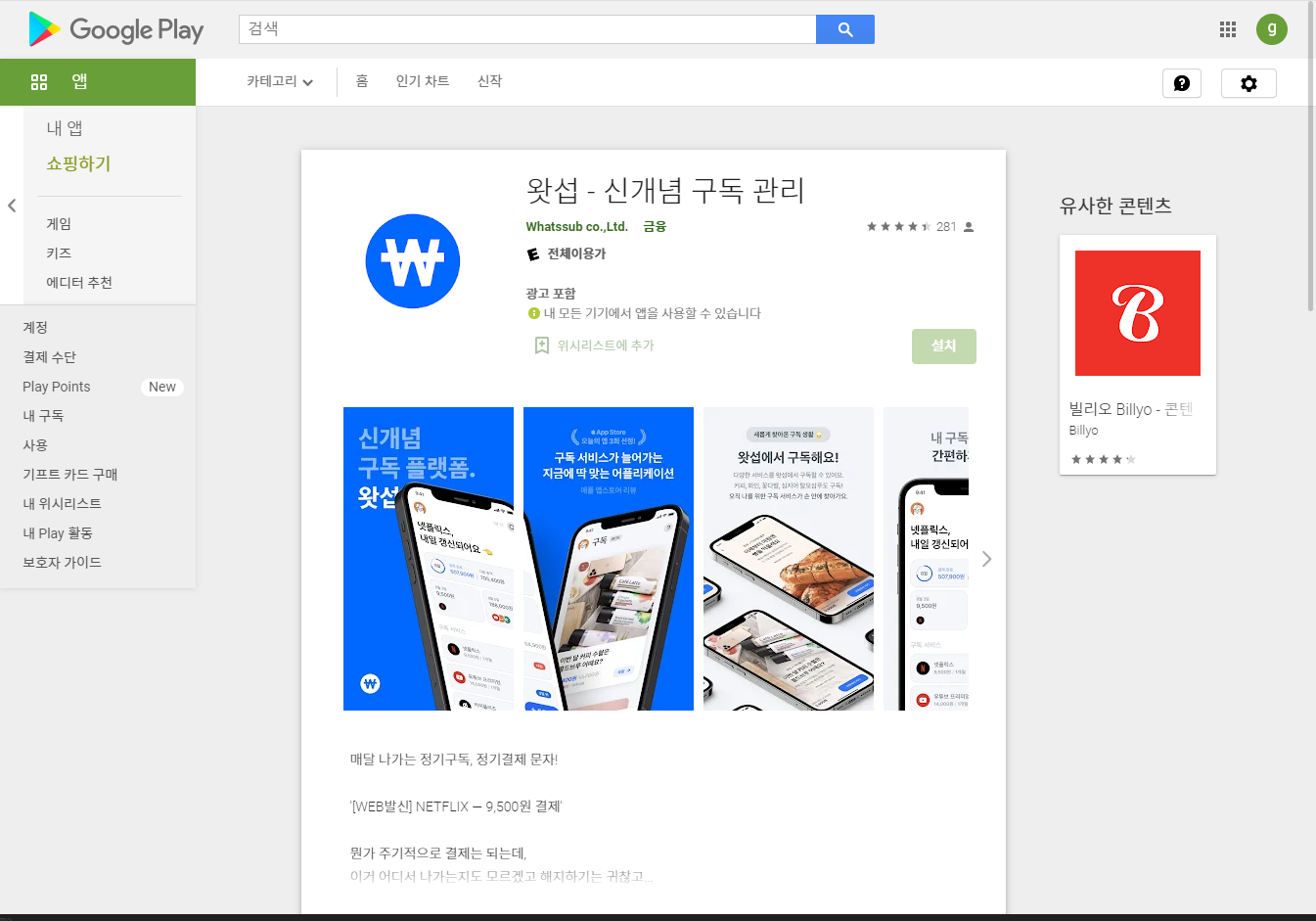 왓섭 - 신개념 구독 관리 (Android)