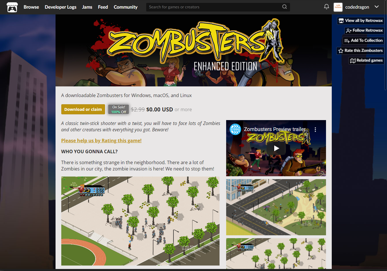 ₩3,300 -> ₩0(Free) Zombusters 좀버스터 무료로 받기 영구소장 - itch.io 잇치 닷 아이오 한시적 무료 소장하기