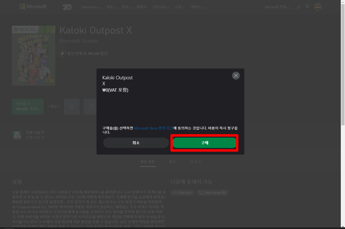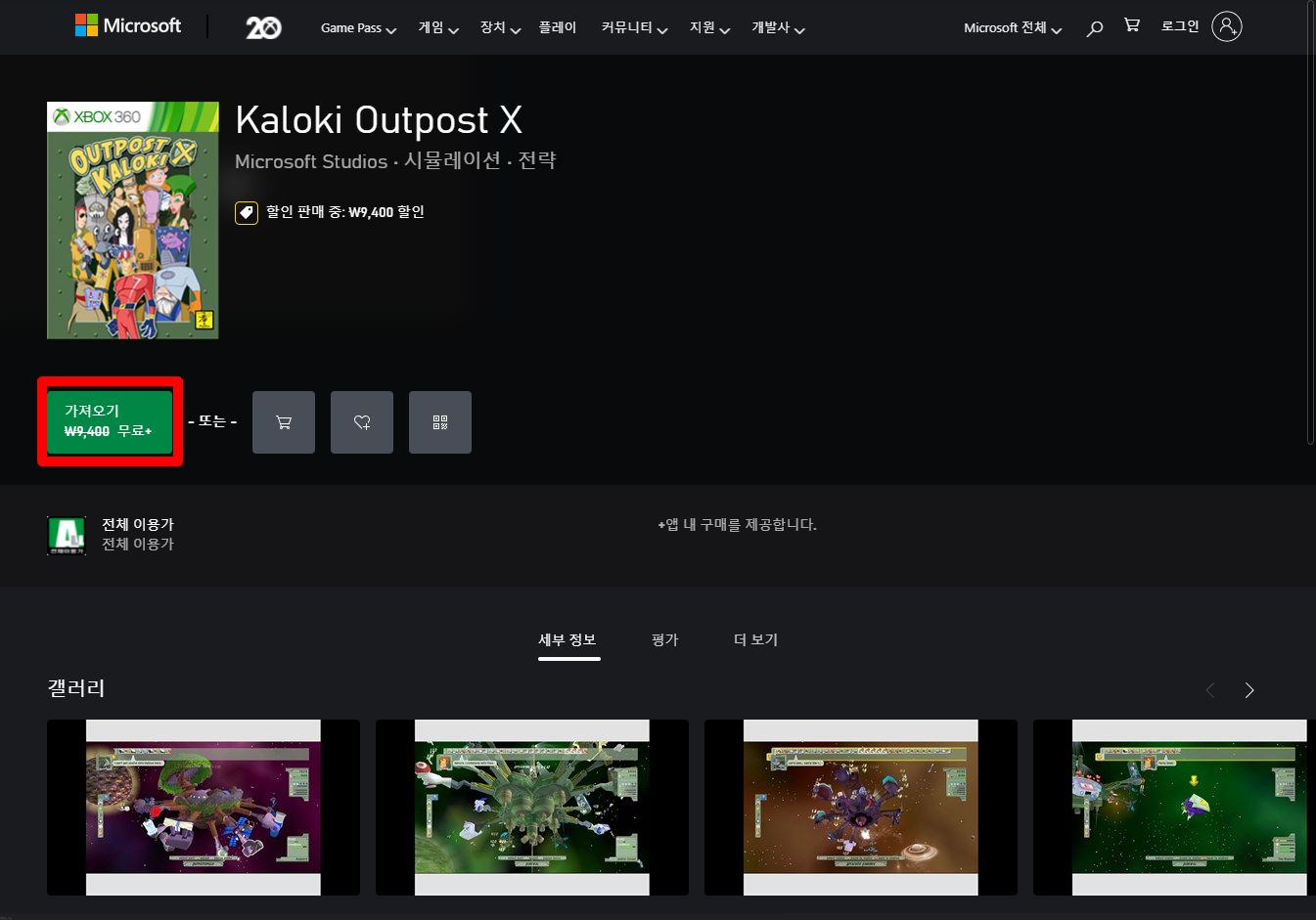 ₩9,400 -> ₩0(FREE) Kaloki Outpost X 칼로키 아웃포스트 X - MS XBOX 무료게임 받기 FREE GAME