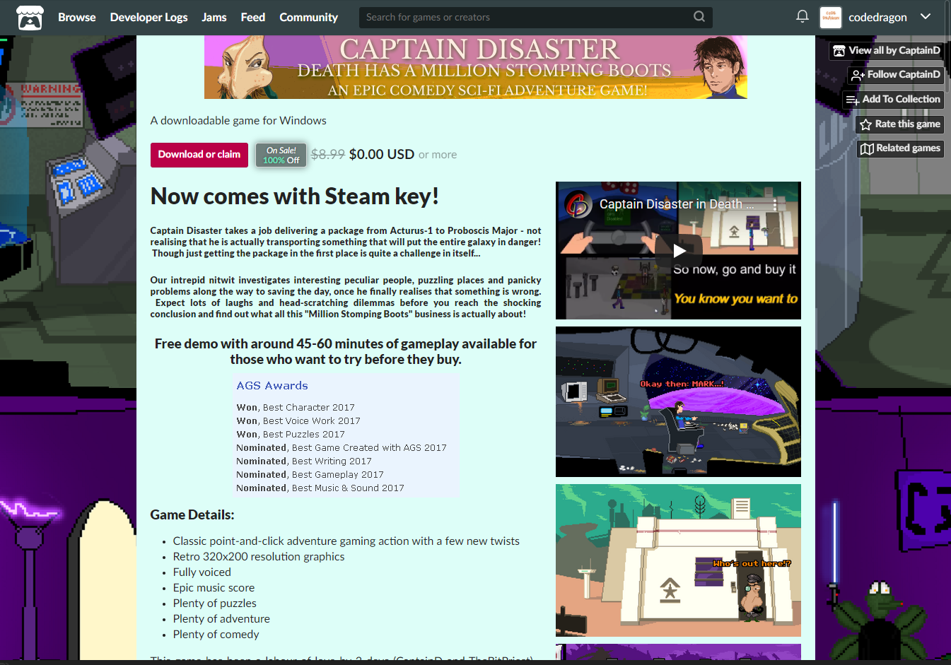 - "Captain Disaster in: Death Has A Million Stomping Boots" 게임 페이지