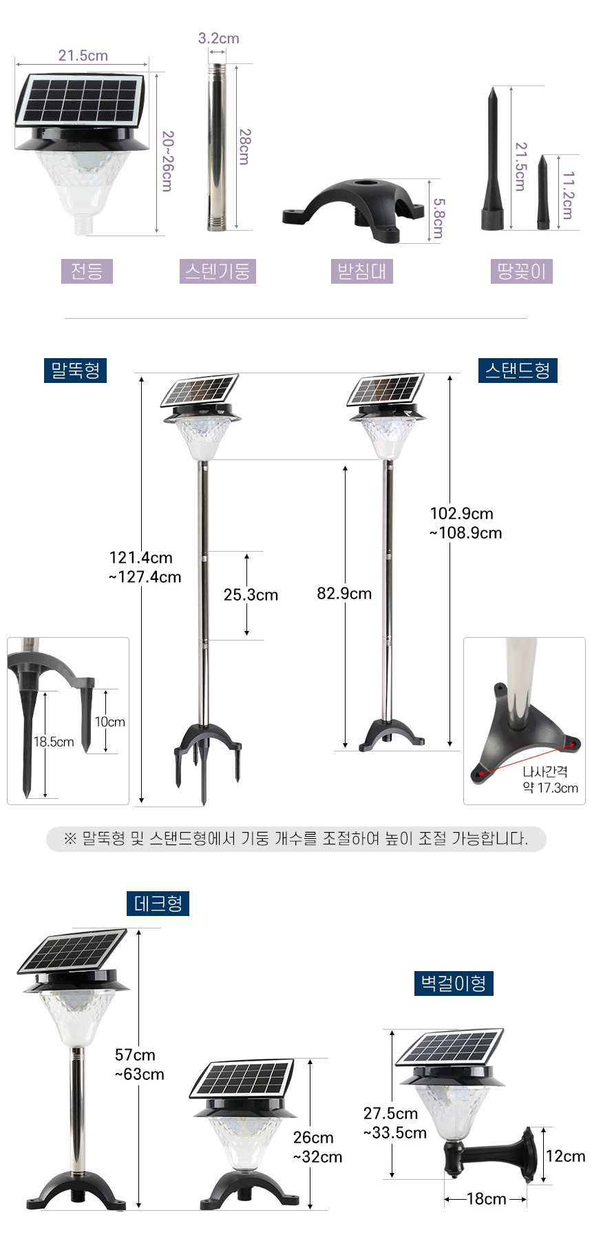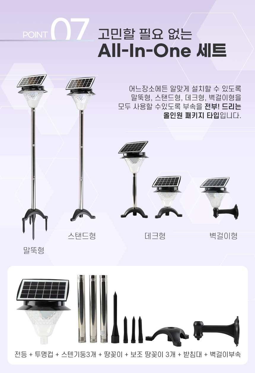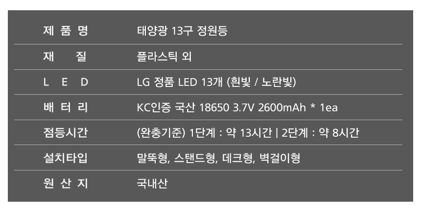 태양광 13LED 정원등 국내생산 태양열 잔디등 야외 조명 말뚝 벽등 데크 올인원 풀세트 구성 - All in one