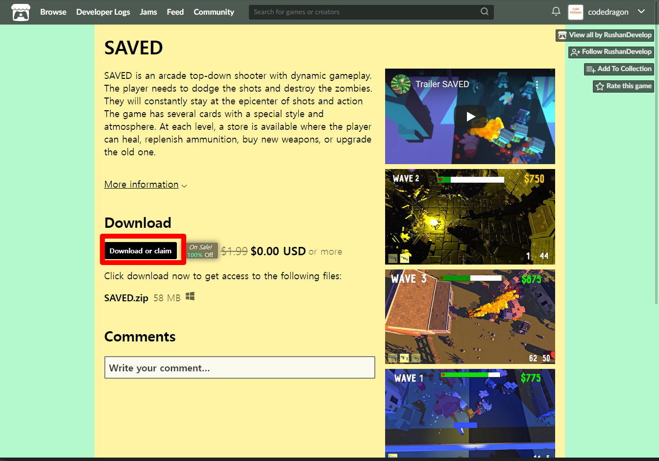 ₩1,100 -> ₩0(Free) SAVED 세이브 무료로 받기 영구소장 (재배포) - itch.io 잇치 닷 아이오 한시적 무료 소장하기