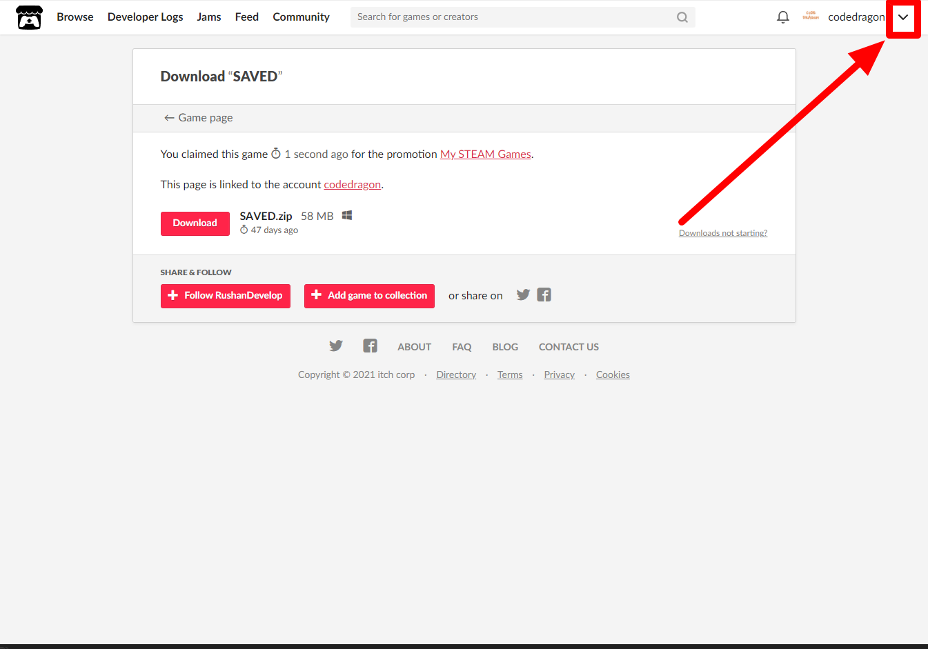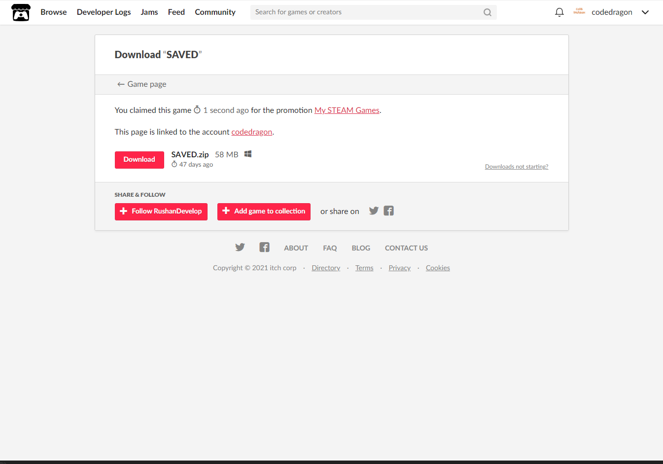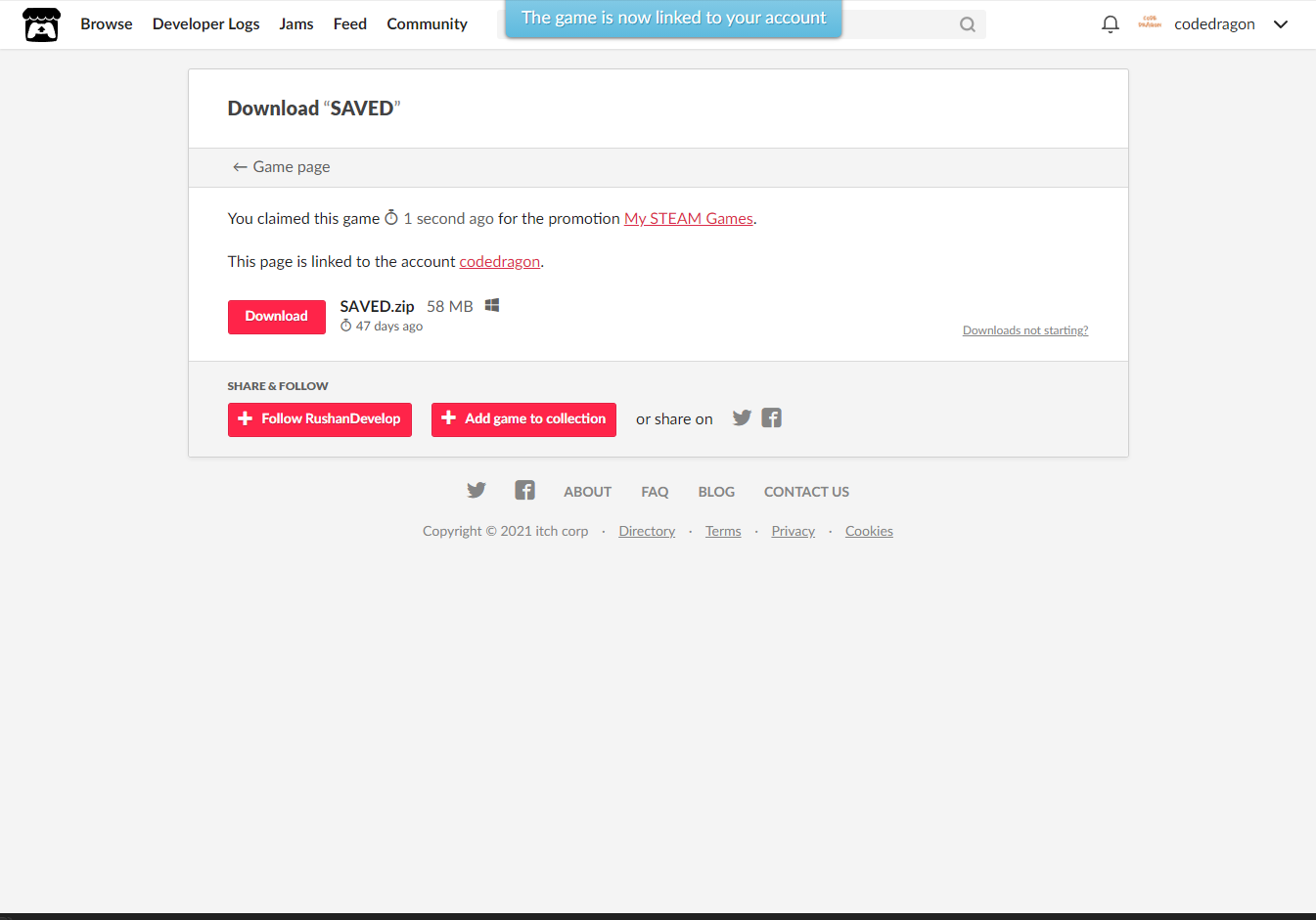 "SAVED" 해당 항목에 있는 [Download] 버튼을 클릭하면 게임의 설치파일을 다운받을 수 있습니다.