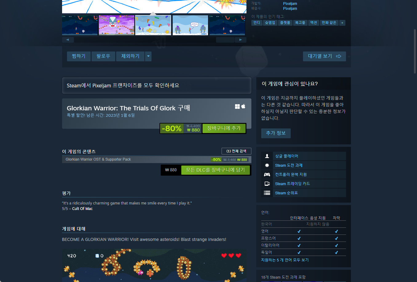 ₩4,400 -> ₩ 0(Free) Glorkian Warrior: The Trials Of Glork 글로키안 워리어: 더 트라이얼 오브 글록 무료 - 인디갈라 indiegala 무료 소장 기회 기간한정 indiegala FREE GAME, Limited time