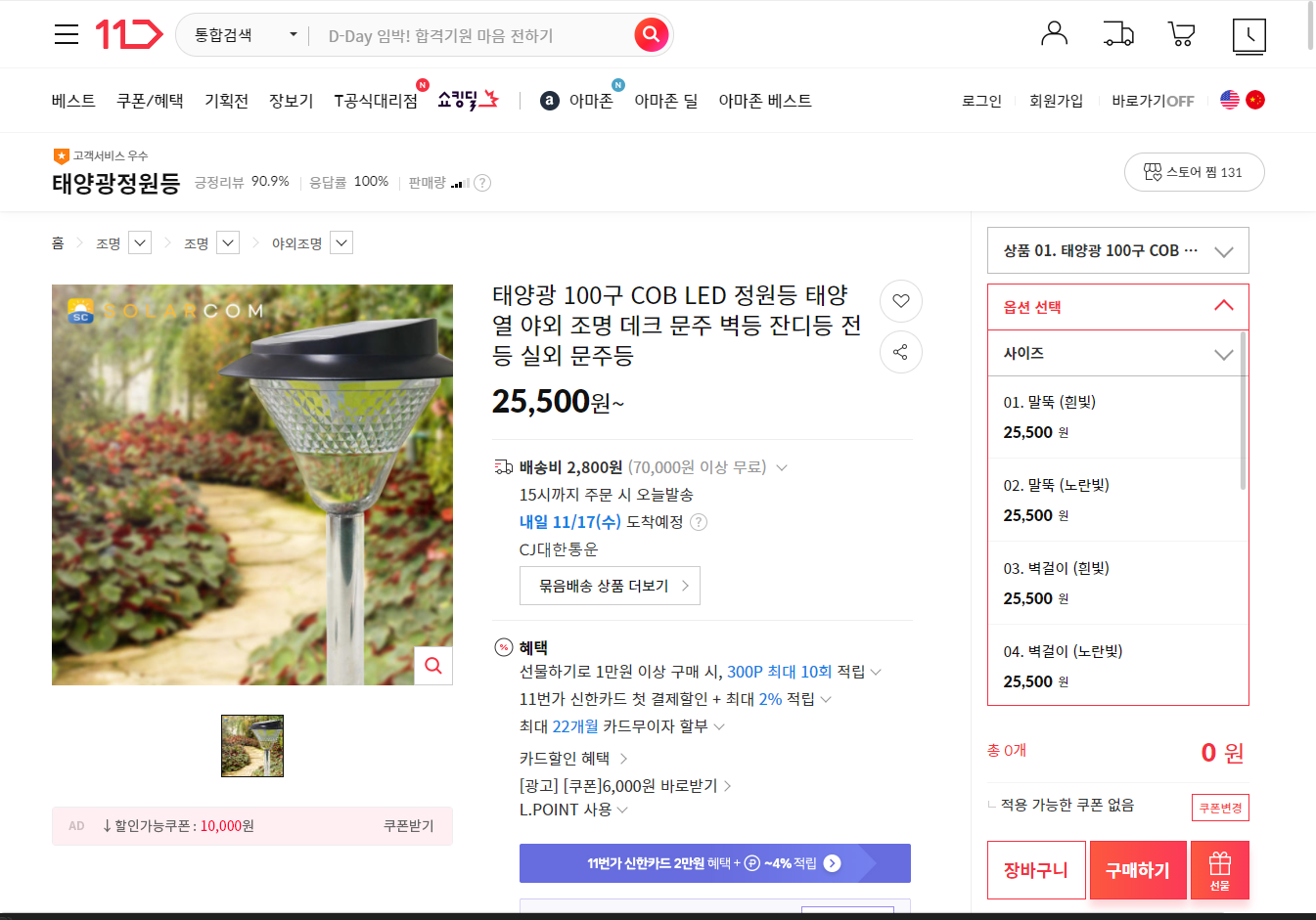 | 태양광 13LED 정원등 국내생산 태양열 잔디등 야외 조명 말뚝 벽등 데크 올인원 풀세트 구성 - All in one (0) | 2021.11.17 |