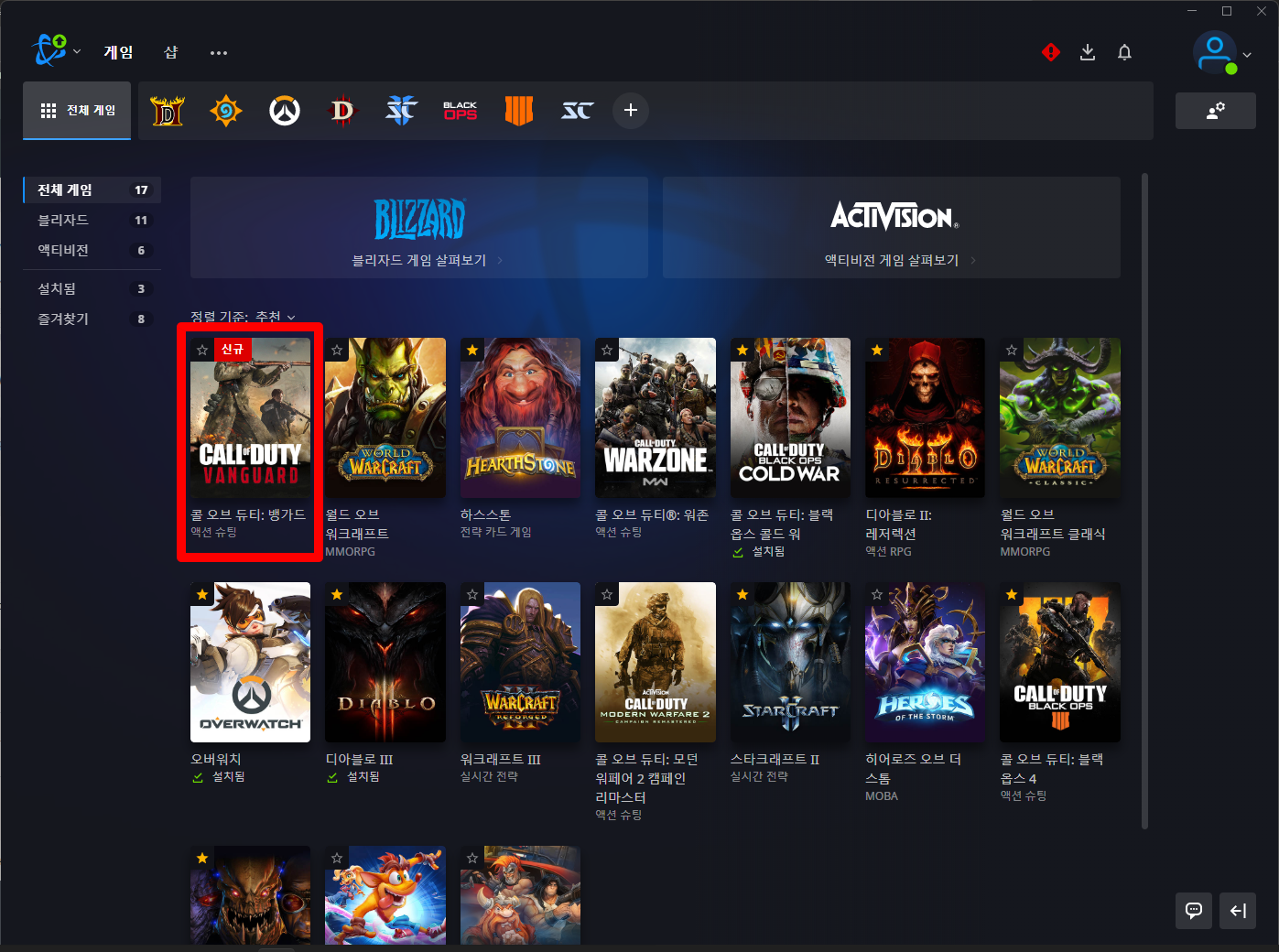 [콜 오브 듀티: 뱅가드] 항목 클릭합니다.