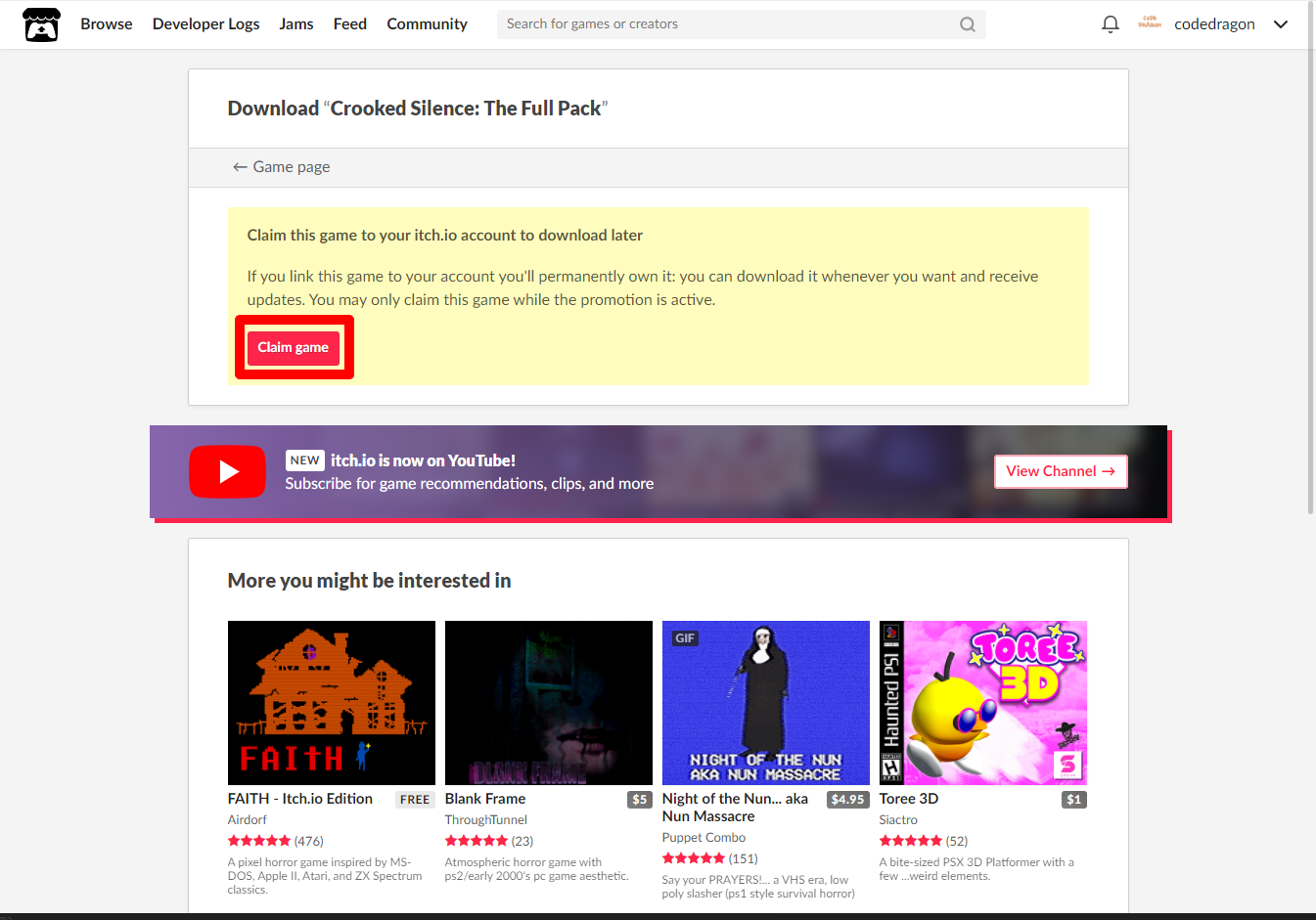 "Crooked Silence: The Full Pack" 공식 페이지에 접속합니다.