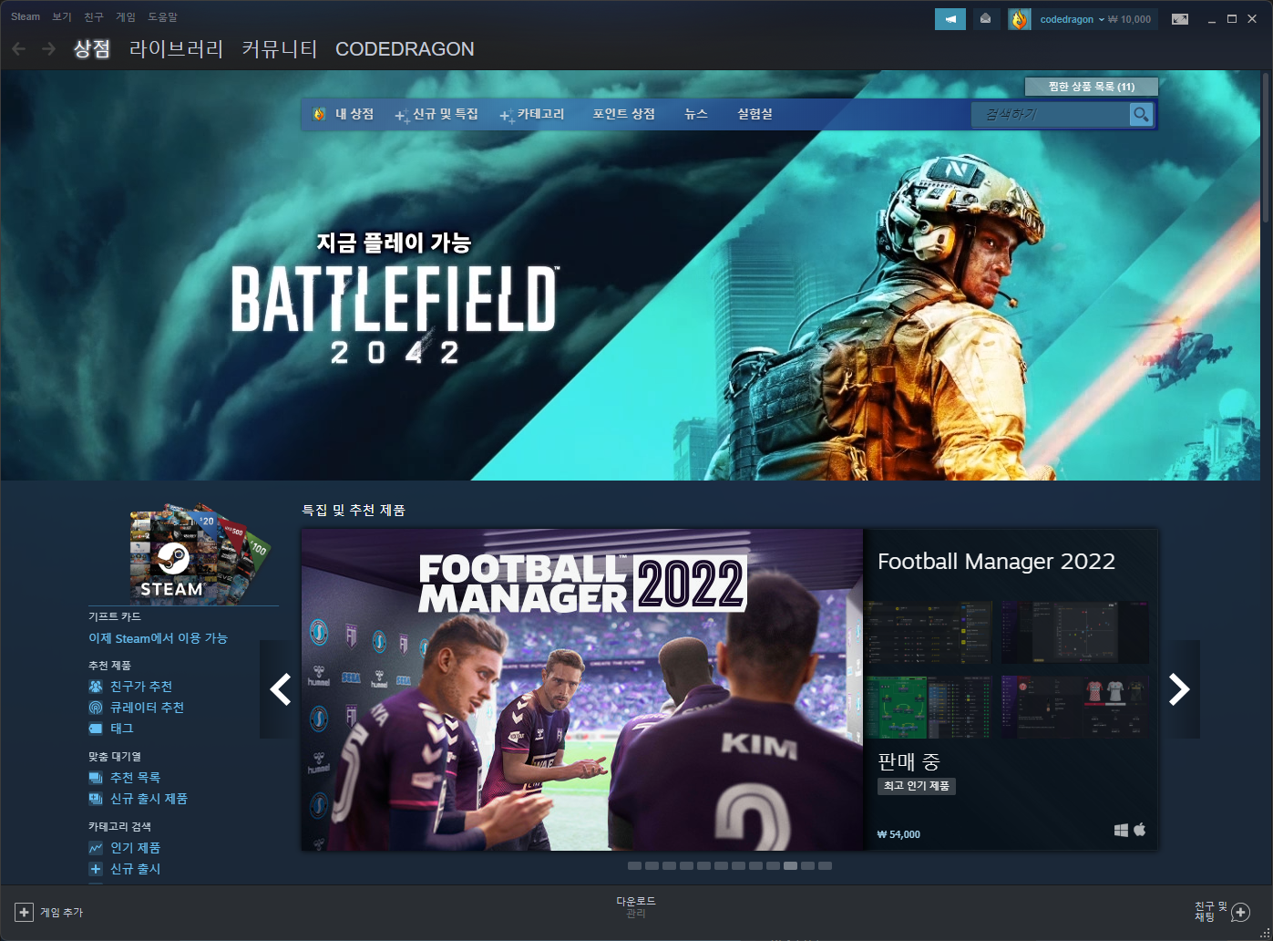 스팀 런처에서 상단에 있는 [라이브러리] 메뉴를 클릭합니다.