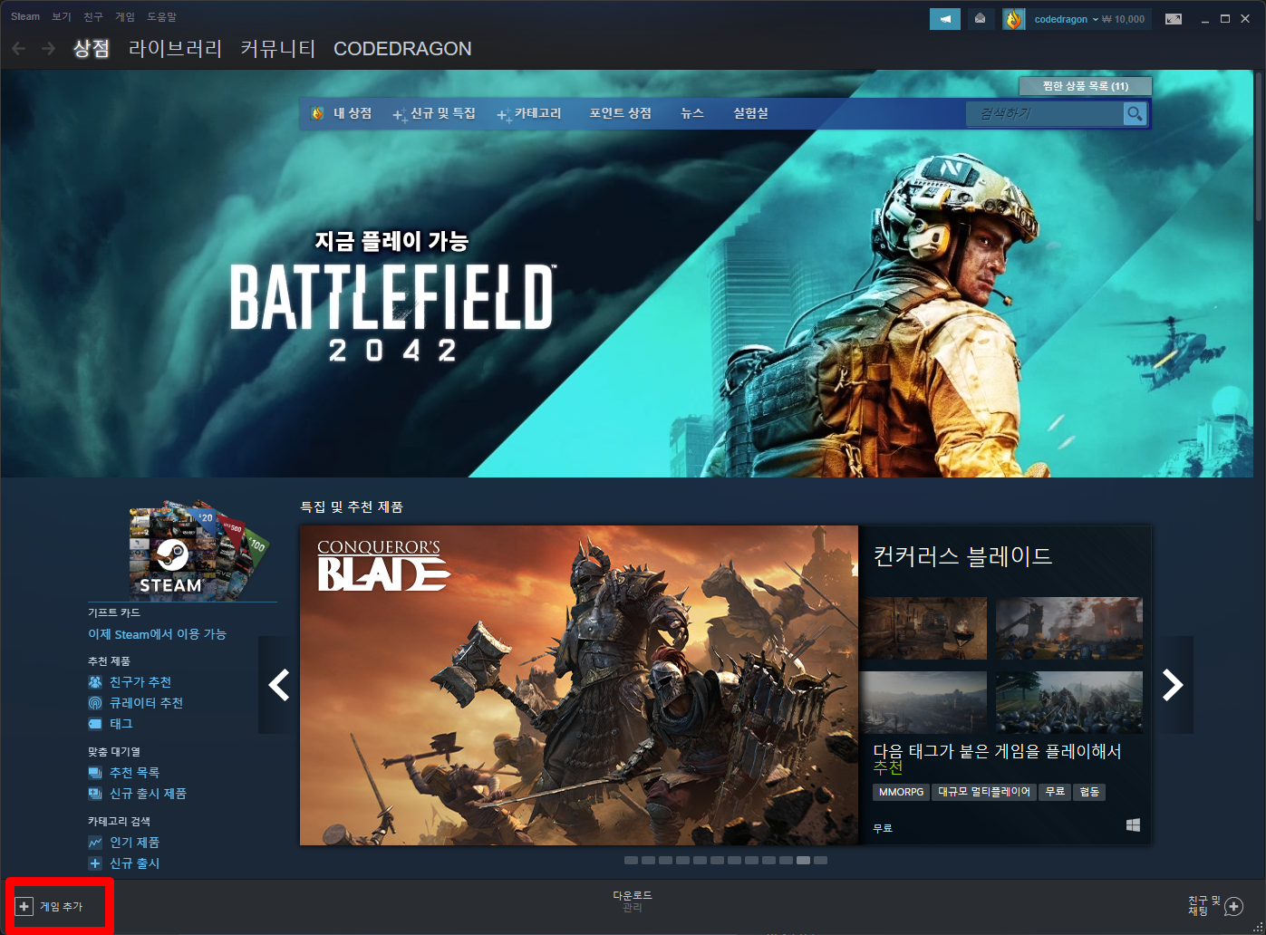 좌측하단의 [+ 게임추가] 클릭합니다.