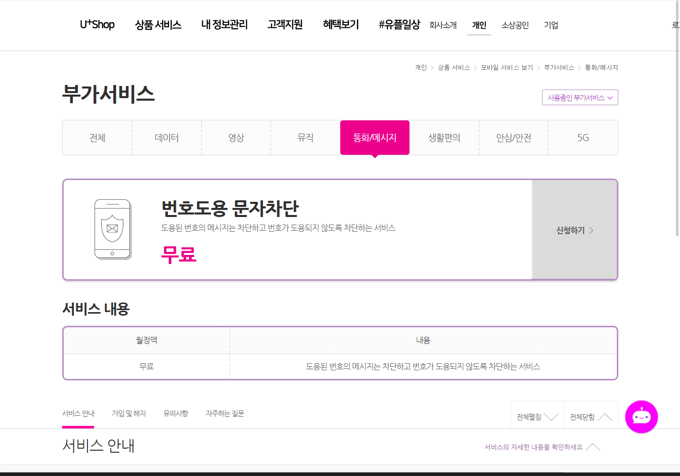 번호도용 문자차단 - LGU+