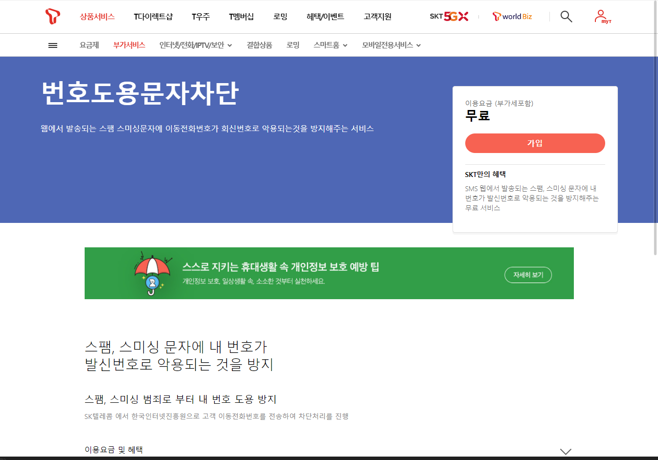 번호도용문자차단 - SK Tworld