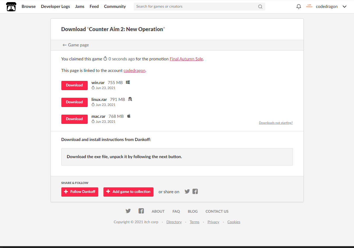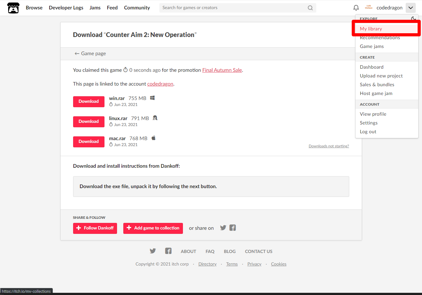 itch.io에서 받은 게임 확인해 설치파일 다운받아 보겠습니다.