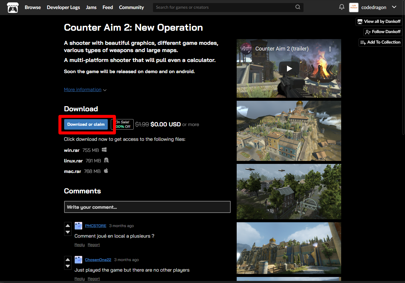 "Counter Aim 2: New Operation" 공식 페이지에 접속합니다.
