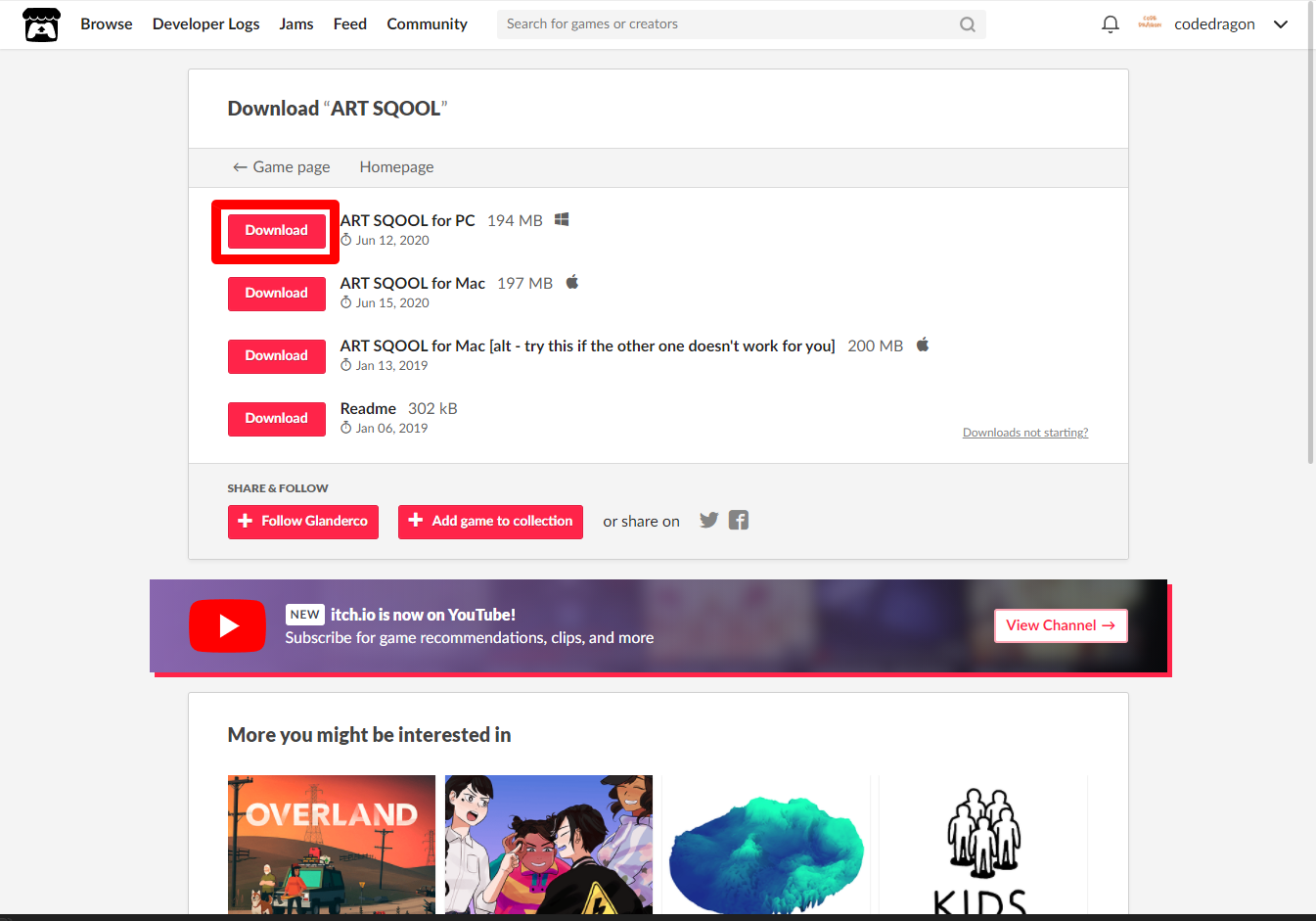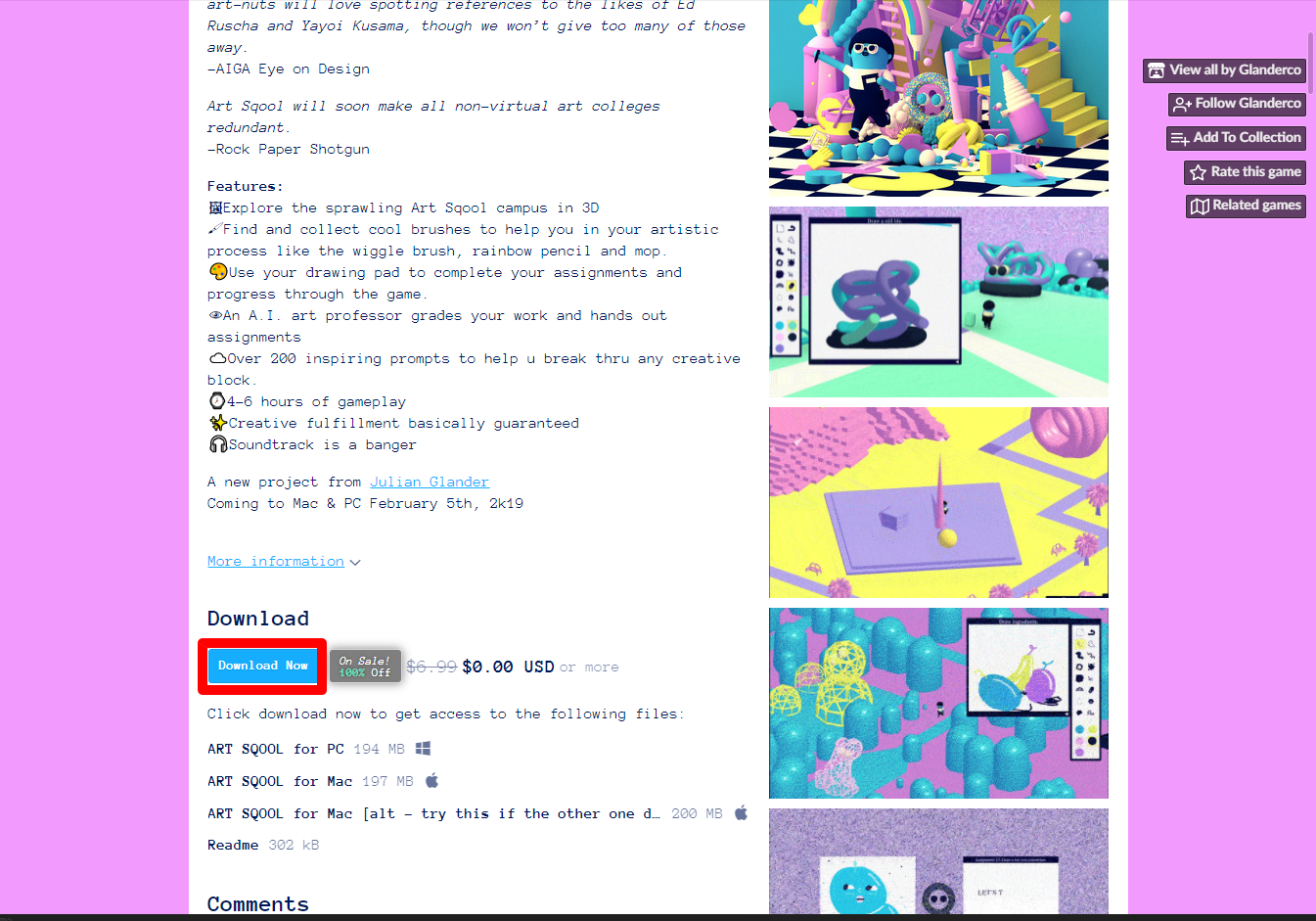 "ART SQOOL" 해당 항목에 있는 [Download] 버튼을 클릭하면 게임의 설치파일을 다운받을 수 있습니다.
