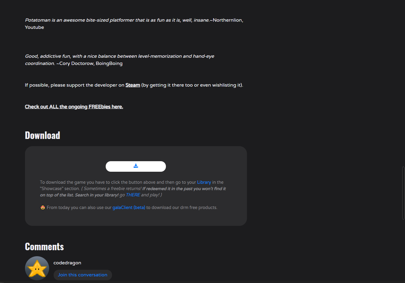 나의 계정의 라이브러리 안에서 "Potatoman Seeks the Troof" 게임 가지고 있는 것 확인할 수 있으며 설치파일도 다운받을 수 있습니다.
