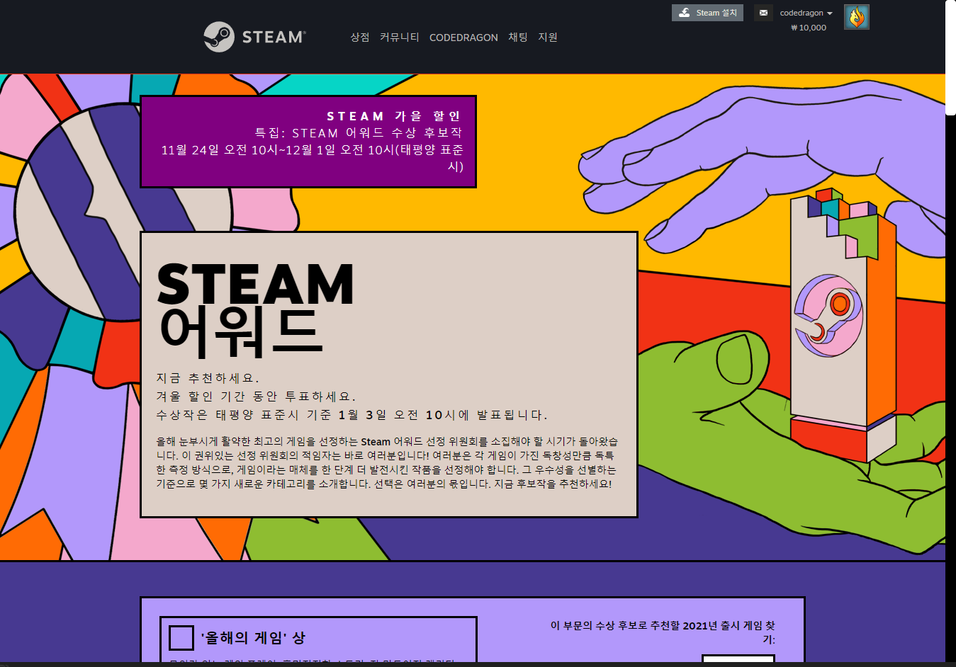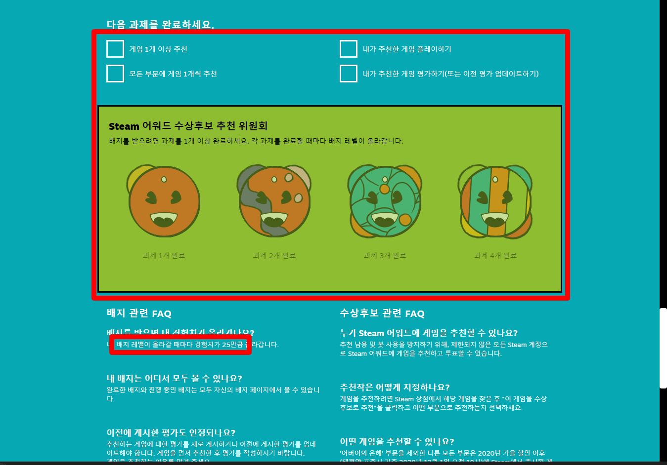 THE STEAM AWARDS 스팀 어워드 - 배지 100XP 경험치 획득하기