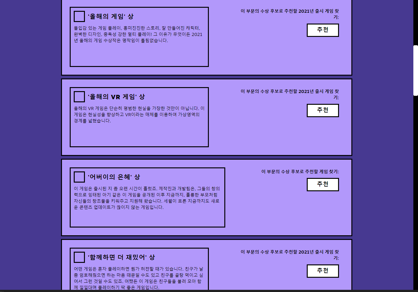 각 카테고리별로 게임을 선정할 수 있습니다.