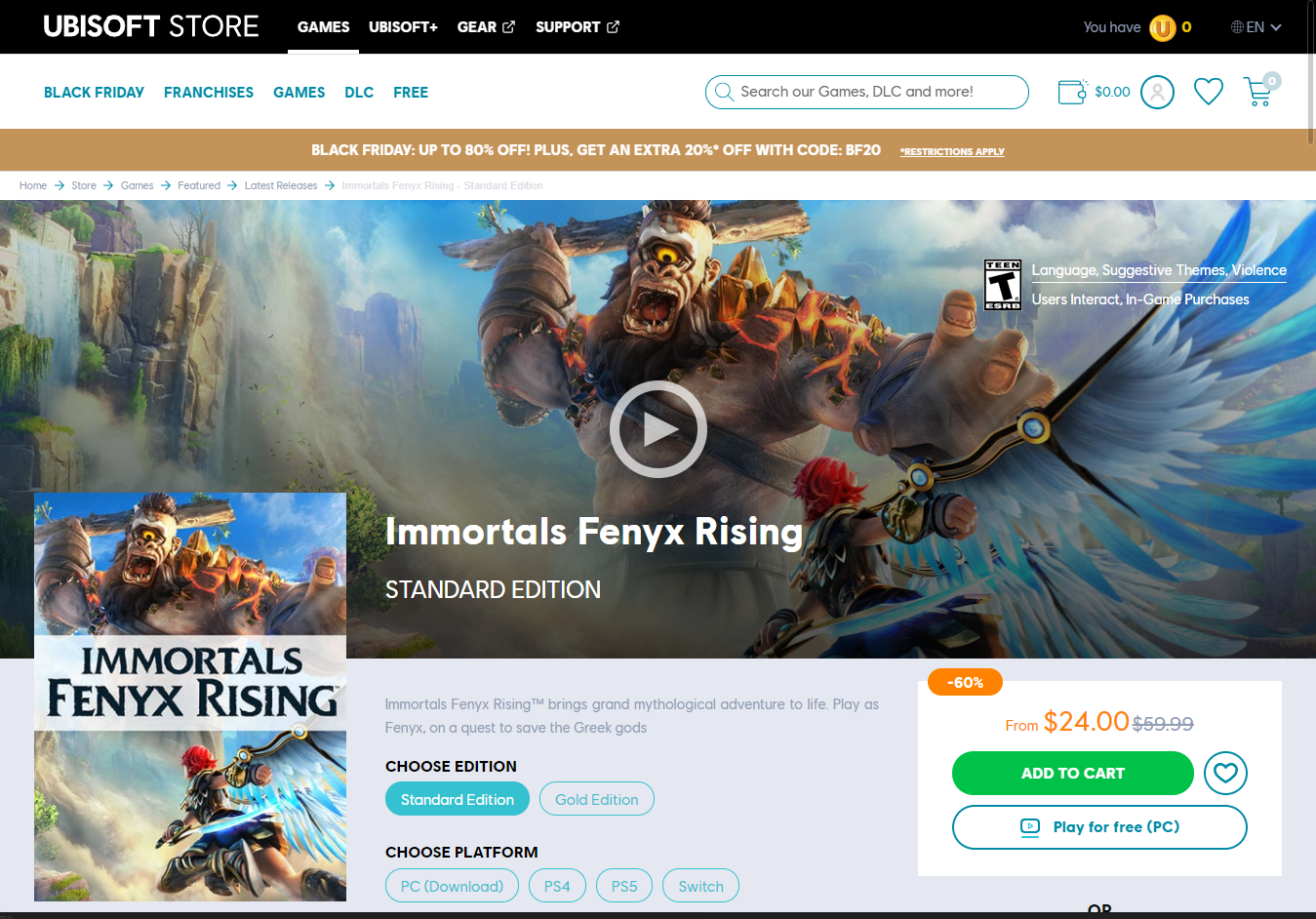 - "Immortals Fenyx Rising" 게임 페이지