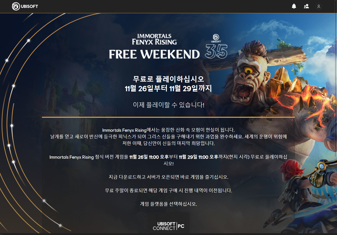 Immortals Fenyx Rising 임모탈 피닉스 라이징 - Ubisoft 유비소프트 금주 무료 플레이 Play for Free weekend on UbiConnect Uplay