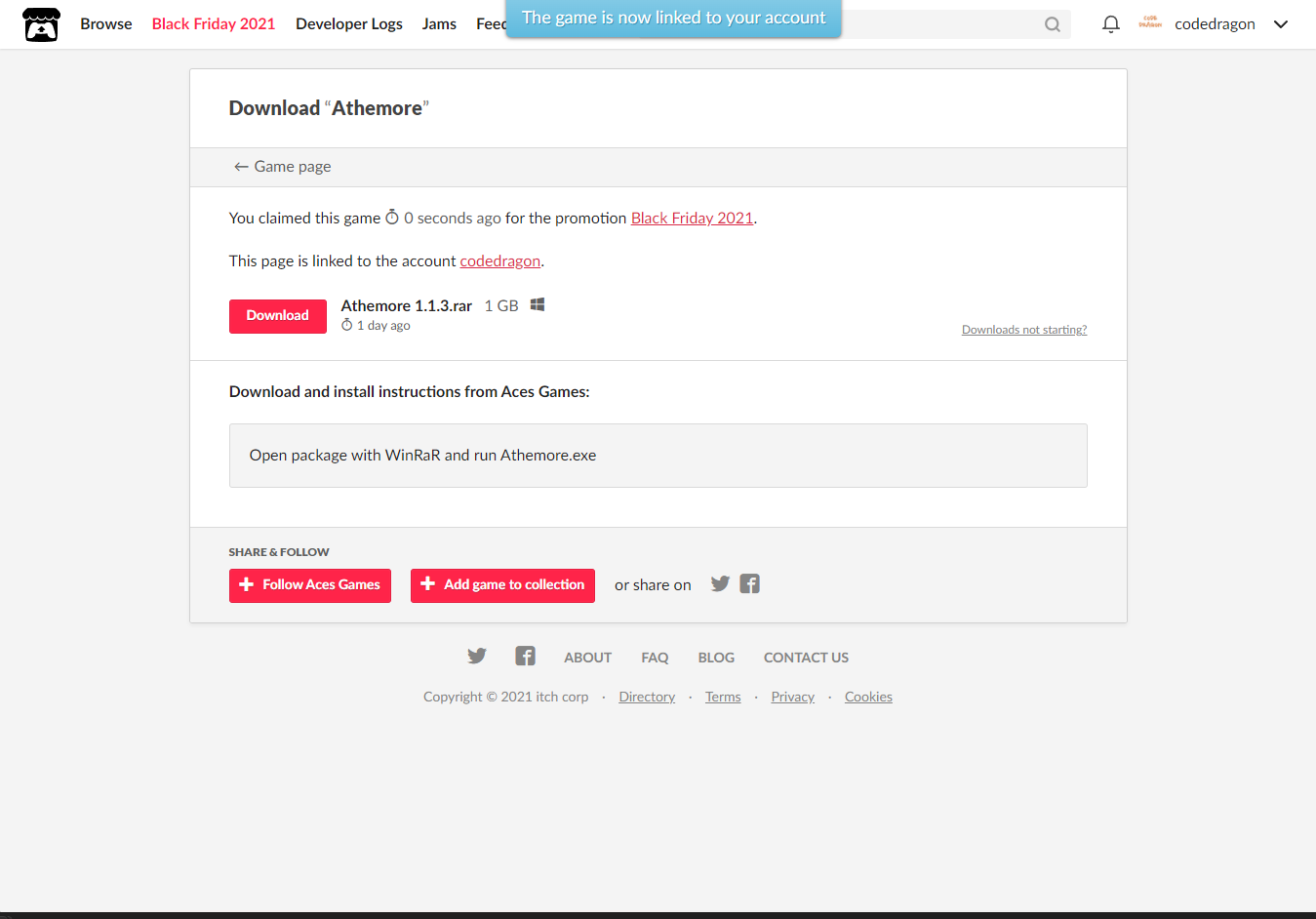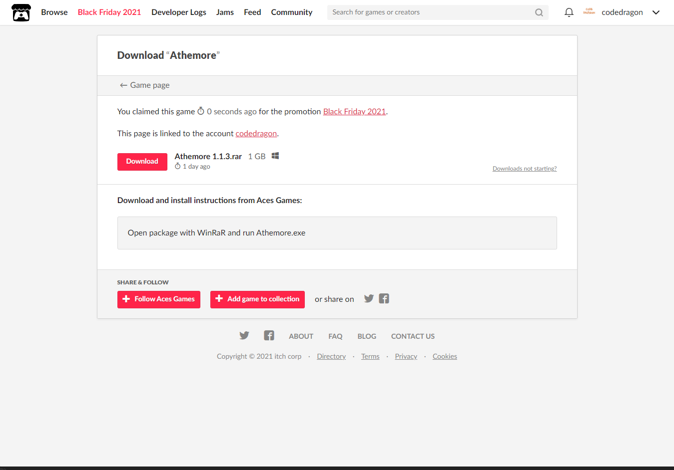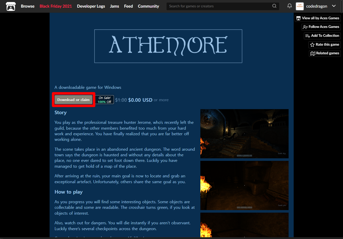 "Athemore" 해당 항목에 있는 [Download] 버튼을 클릭하면 게임의 설치파일을 다운받을 수 있습니다.