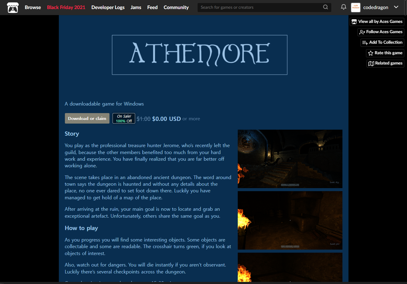₩1,196 -> ₩0(Free) Athemore 애서모어 무료로 받기 영구소장 - itch.io 잇치 닷 아이오 한시적 무료 소장하기