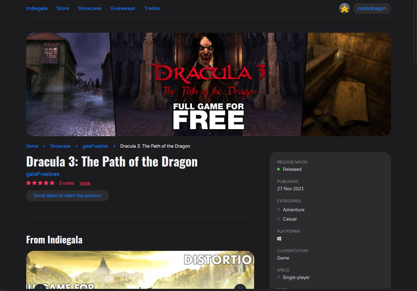 ₩8,500 -> ₩ 0(Free) Dracula 3: The Path of the Dragon 드라큘라 3: 패스 오브 드래곤 무료 - 인디갈라 indiegala 무료 소장 기회 기간한정 indiegala FREEGAME, Limited time