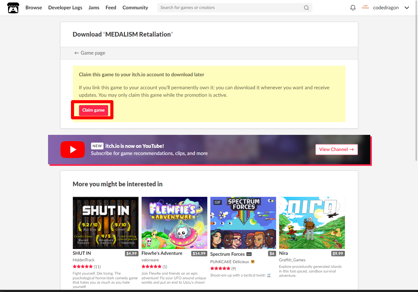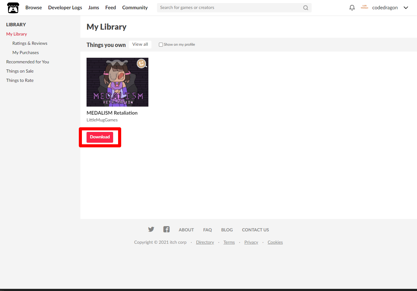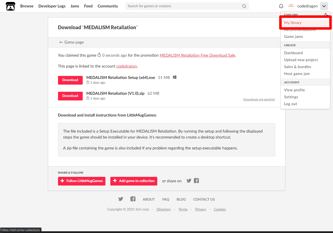 "My Lirary"에서 방금 받은 "MEDALISM Retaliation" 게임 항목을 확인할 수 있습니다.