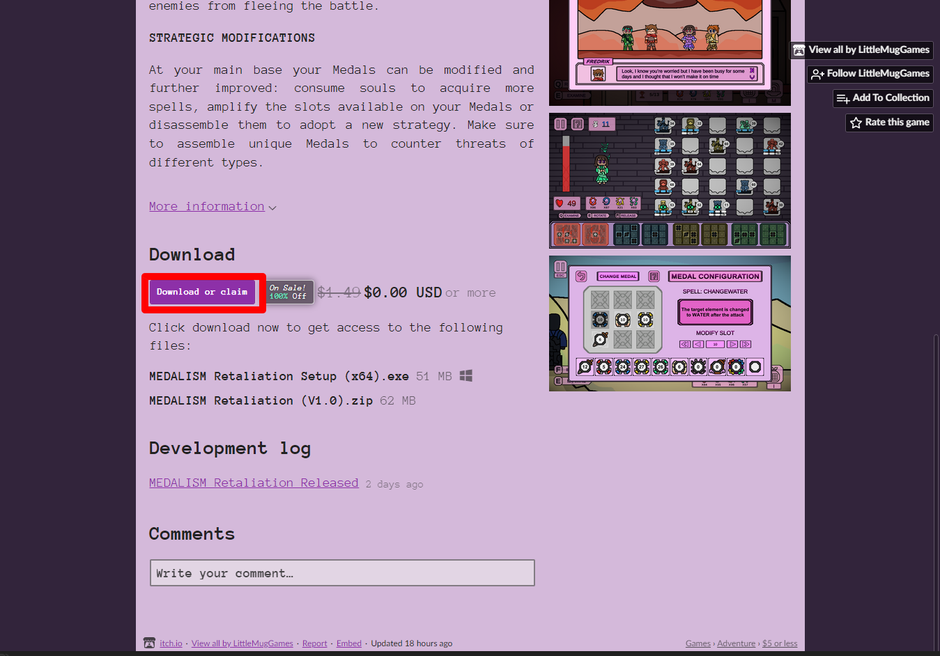 ₩1,762 -> ₩0(Free) MEDALISM Retaliation 메달리즘 리텔리에이션 무료로 받기 영구소장 - itch.io 잇치 닷 아이오 한시적 무료 소장하기