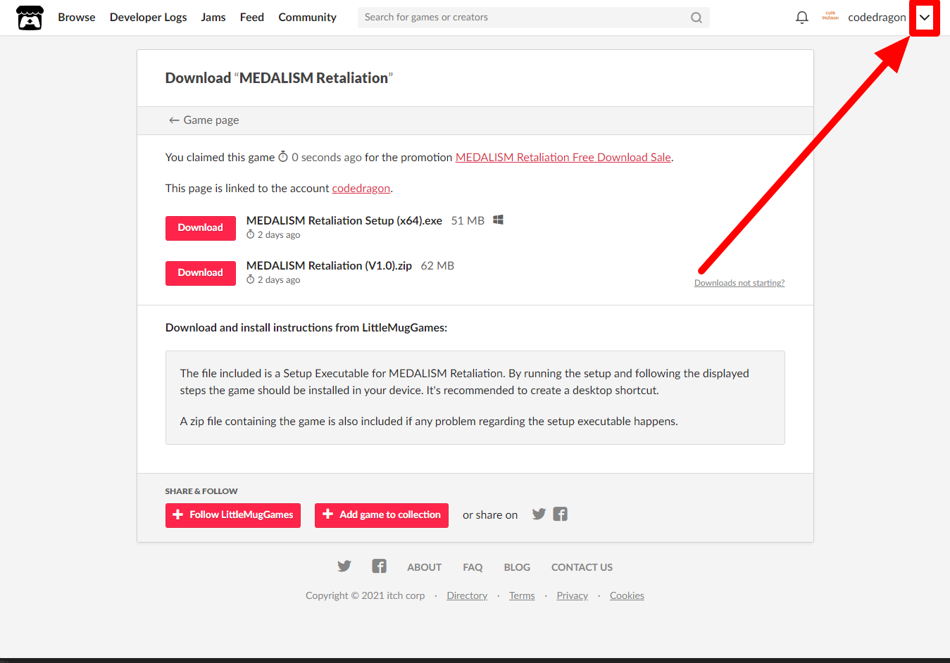 itch.io에서 받은 게임 확인해 설치파일 다운받아 보겠습니다.