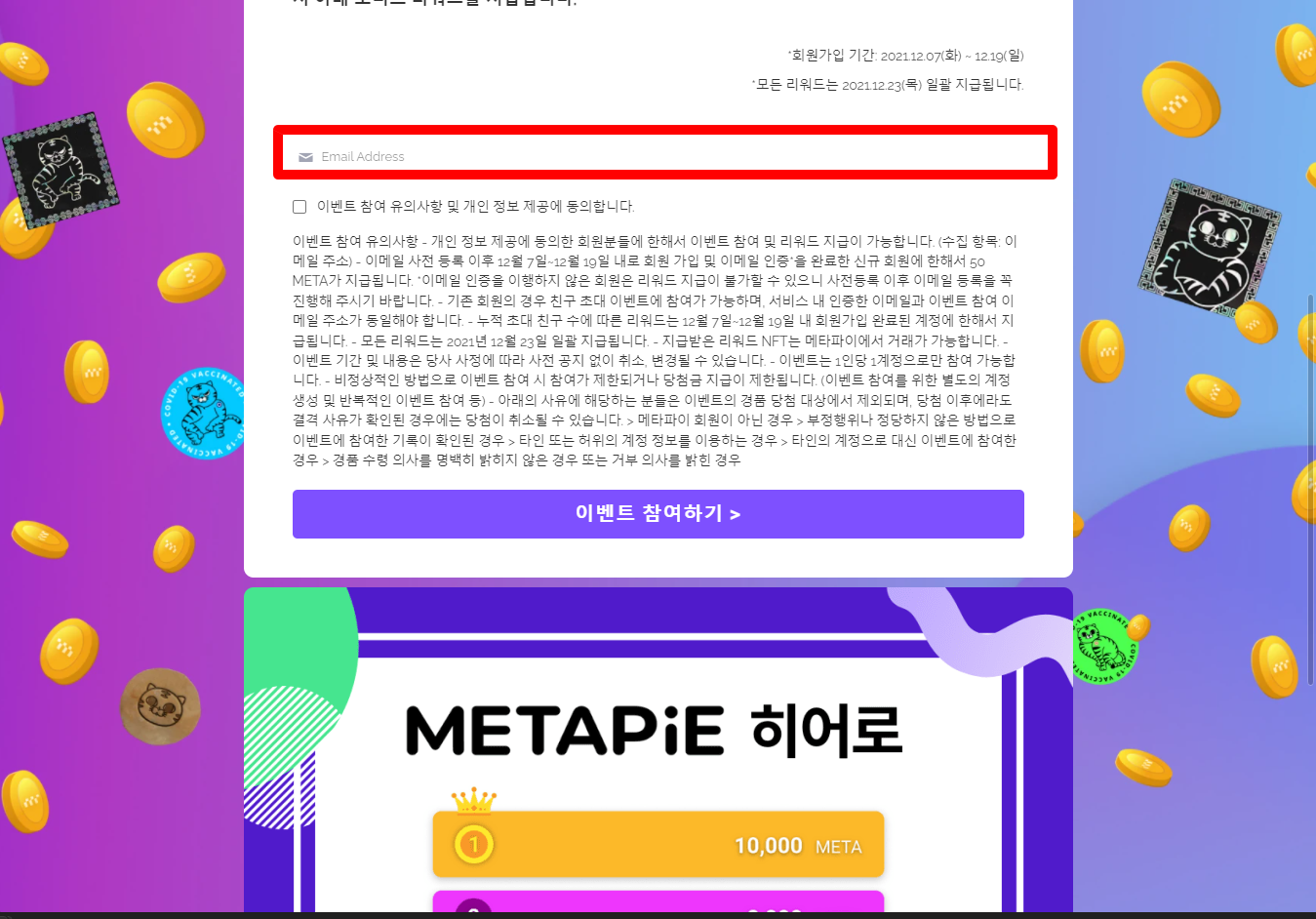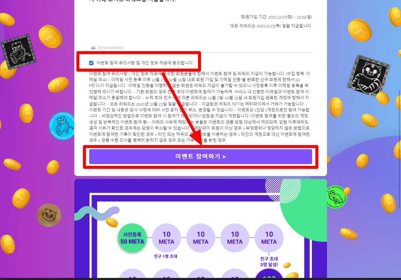[이벤트 참여 유의사항 및 개인 정보 제공에 동의합니다] 체크한 후 [이벤트 참여하기] 클릭합니다.