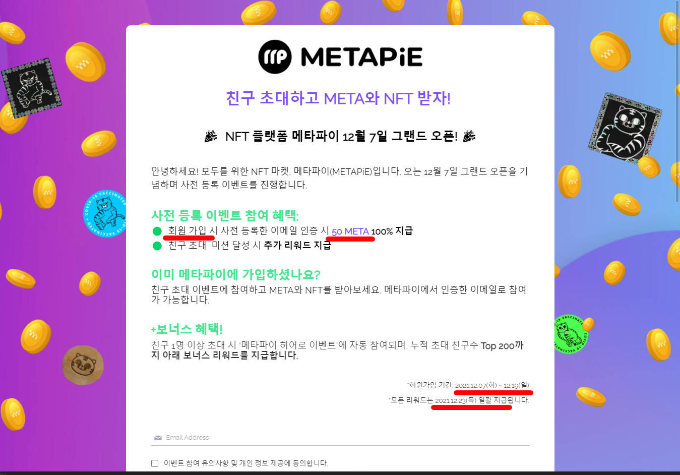 회원가입시 50META를 받을 수 있습니다.