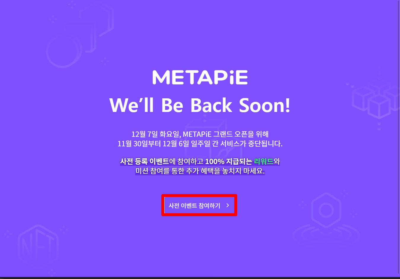 회원가입기간은 12월 19일까지이고 리워드는 12월 23일 일괄지급됩니다.