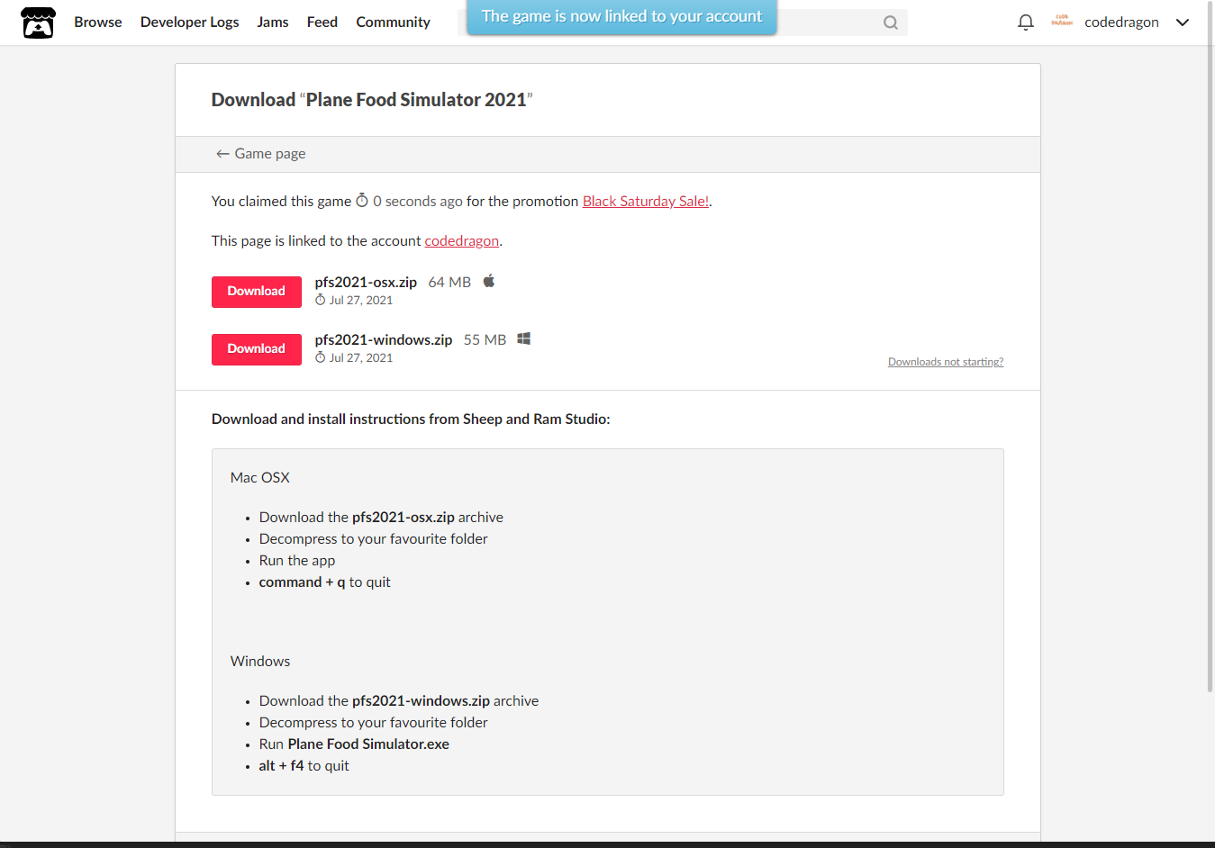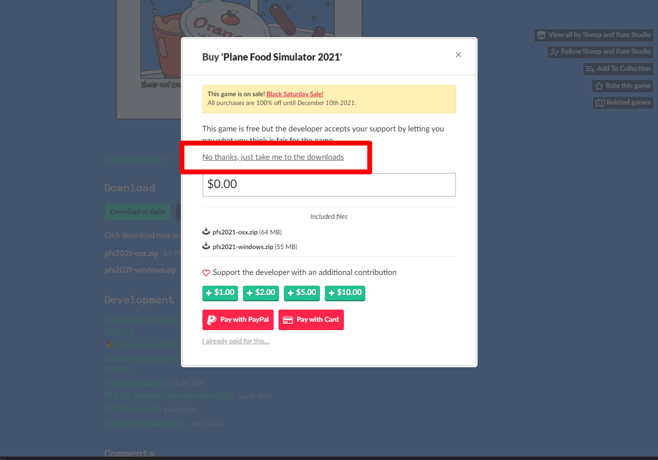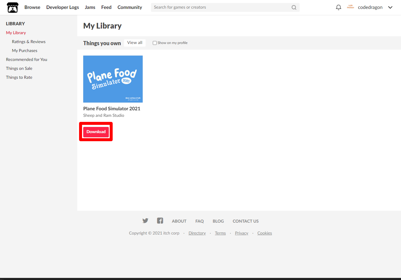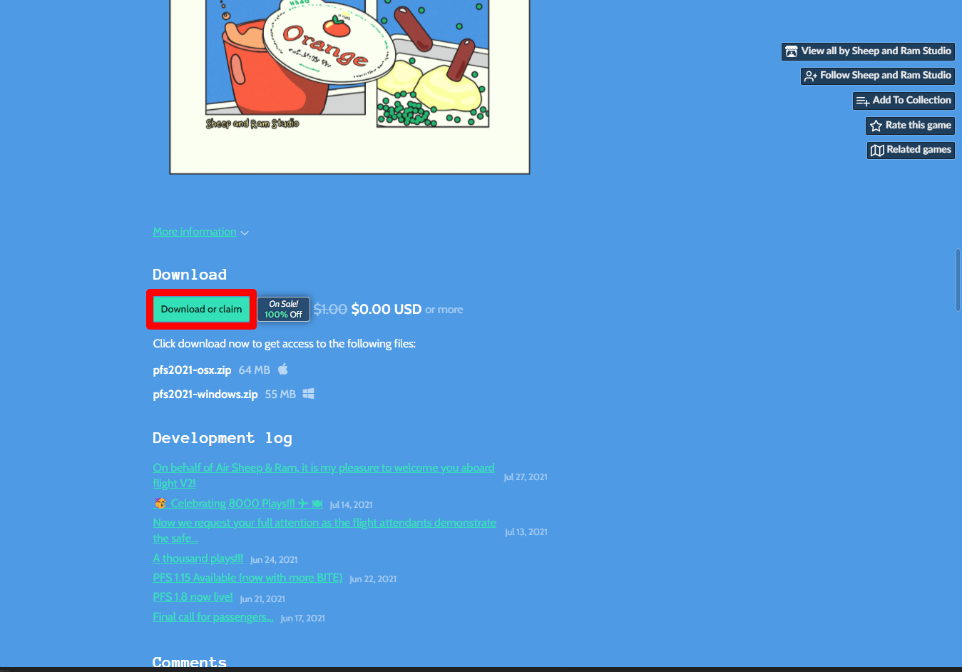"Plane Food Simulator 2021" 해당 항목에 있는 [Download] 버튼을 클릭하면 게임의 설치파일을 다운받을 수 있습니다.