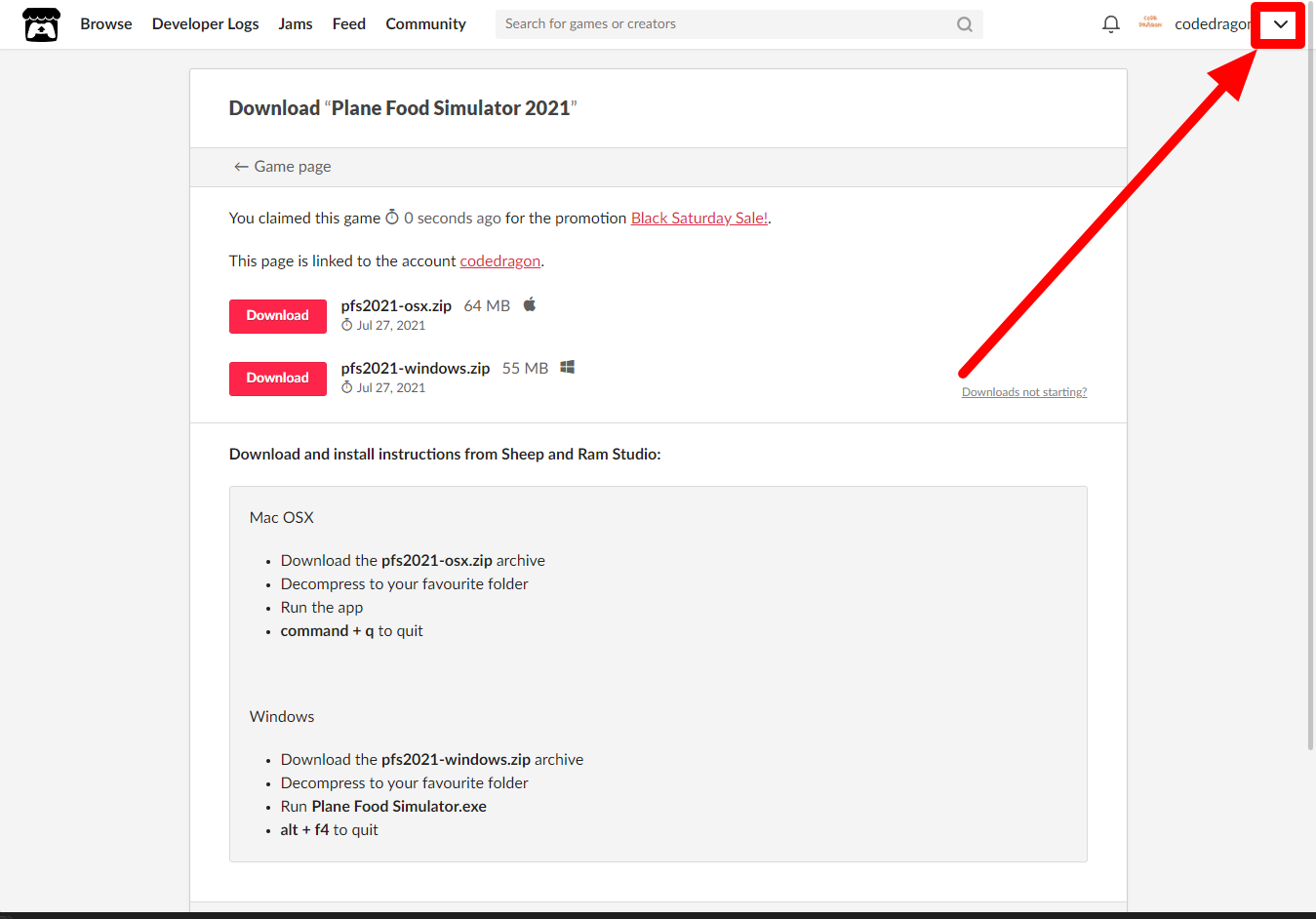 itch.io에서 받은 게임 확인해 설치파일 다운받아 보겠습니다.