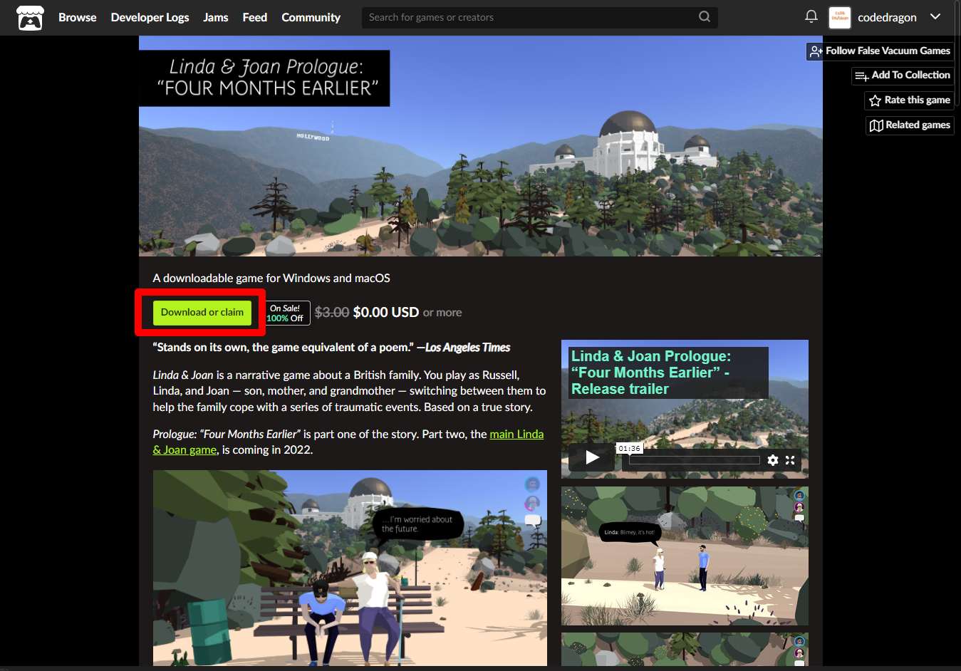 "Linda & Joan Prologue: “Four Months Earlier”" 해당 항목에 있는 [Download] 버튼을 클릭하면 게임의 설치파일을 다운받을 수 있습니다.