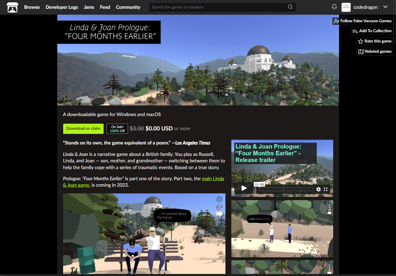 - "Linda & Joan Prologue: “Four Months Earlier”" 게임 페이지