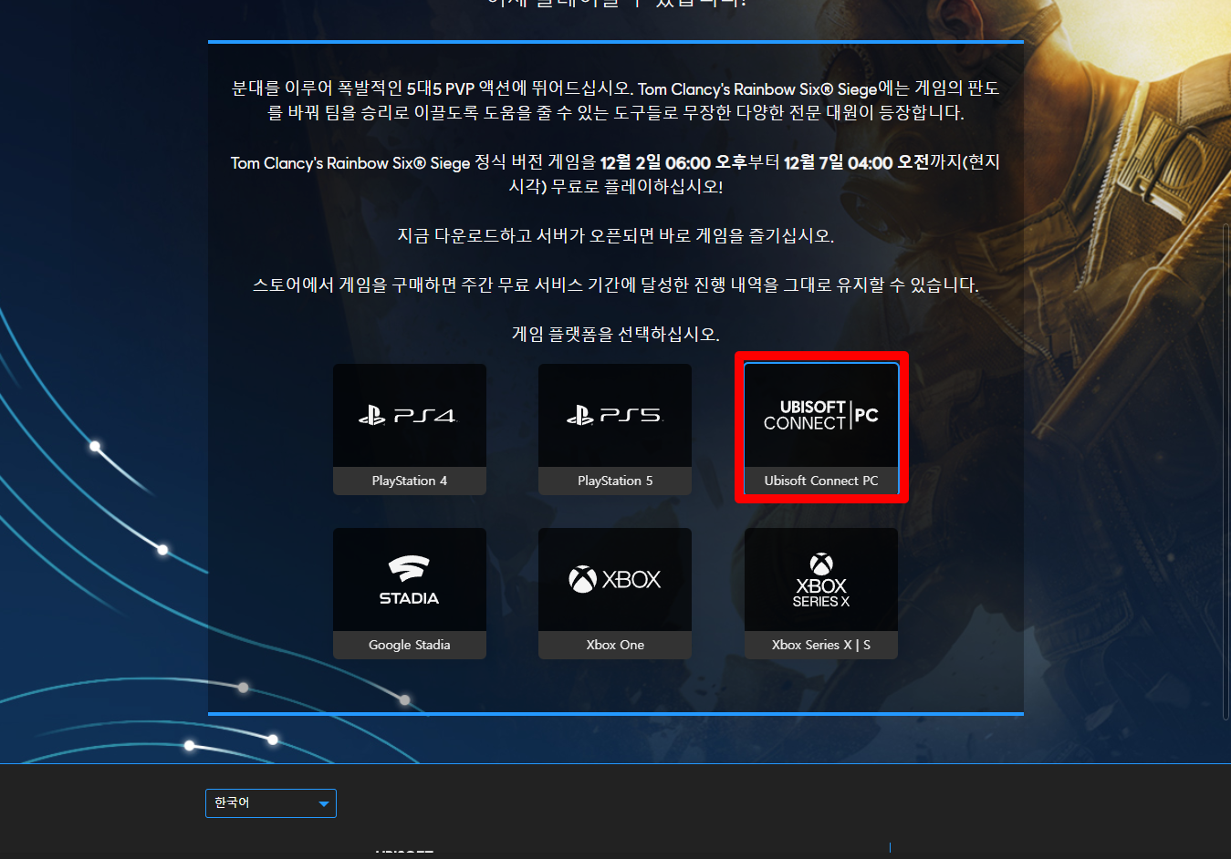 [UBISOFT CONNECT | PC] 클릭합니다.