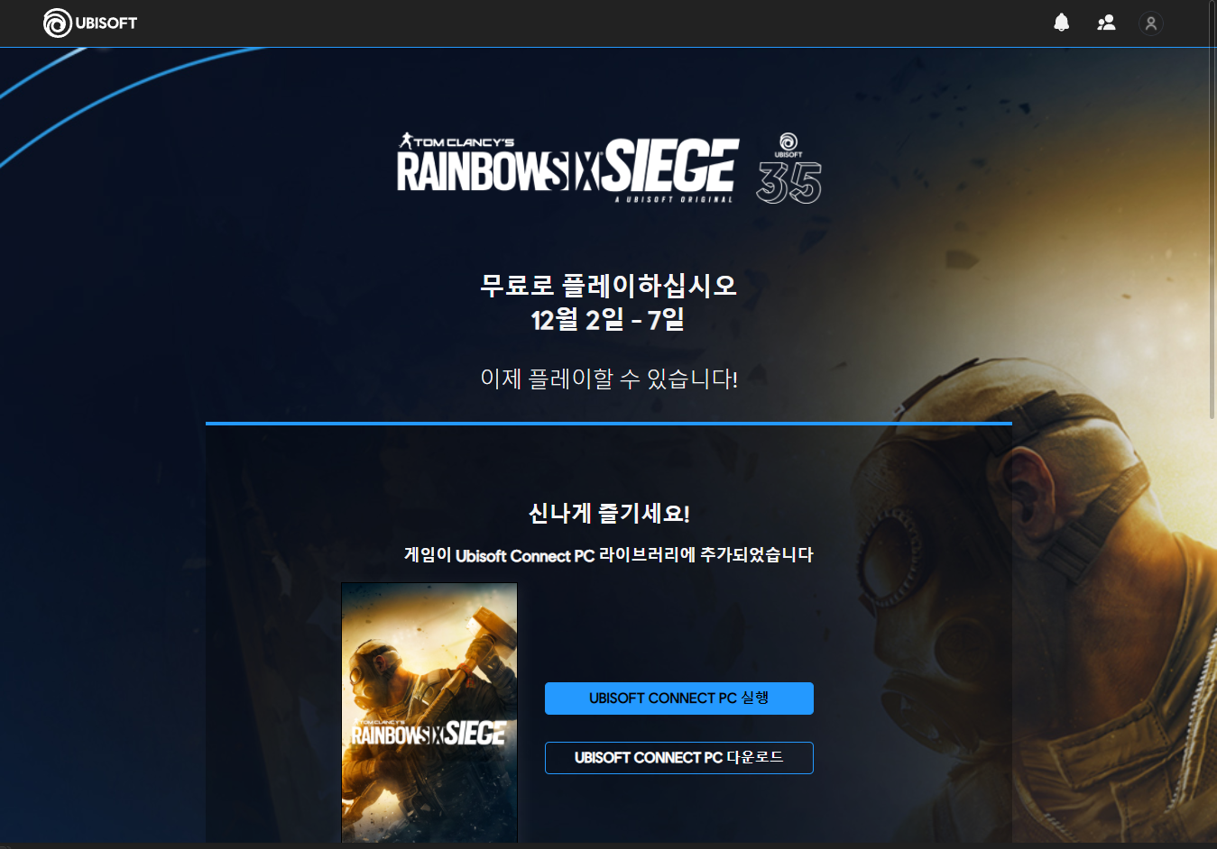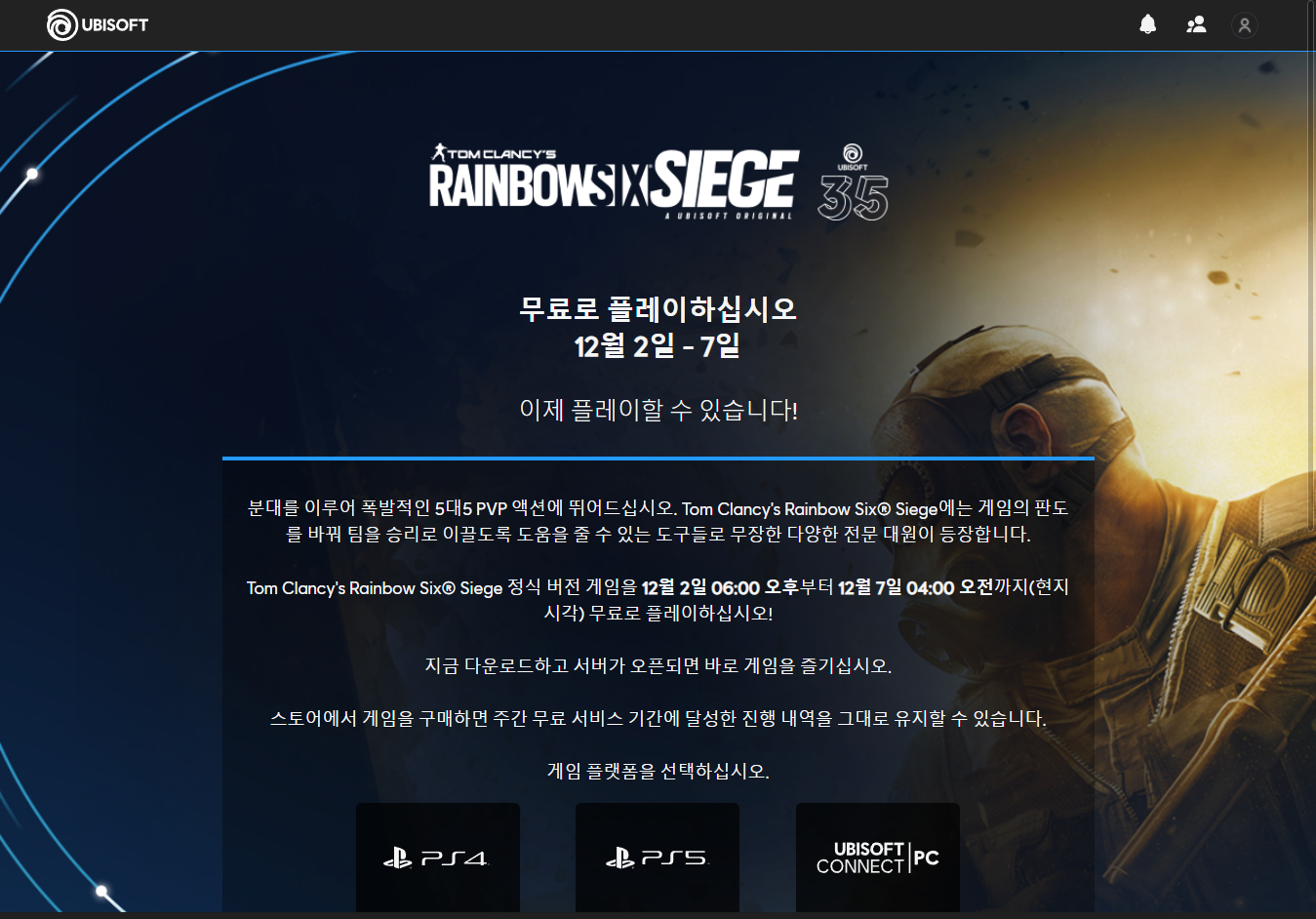 "Tom Clancy's Rainbow Six Siege" 게임 페이지 Ubisoft 유비소프트