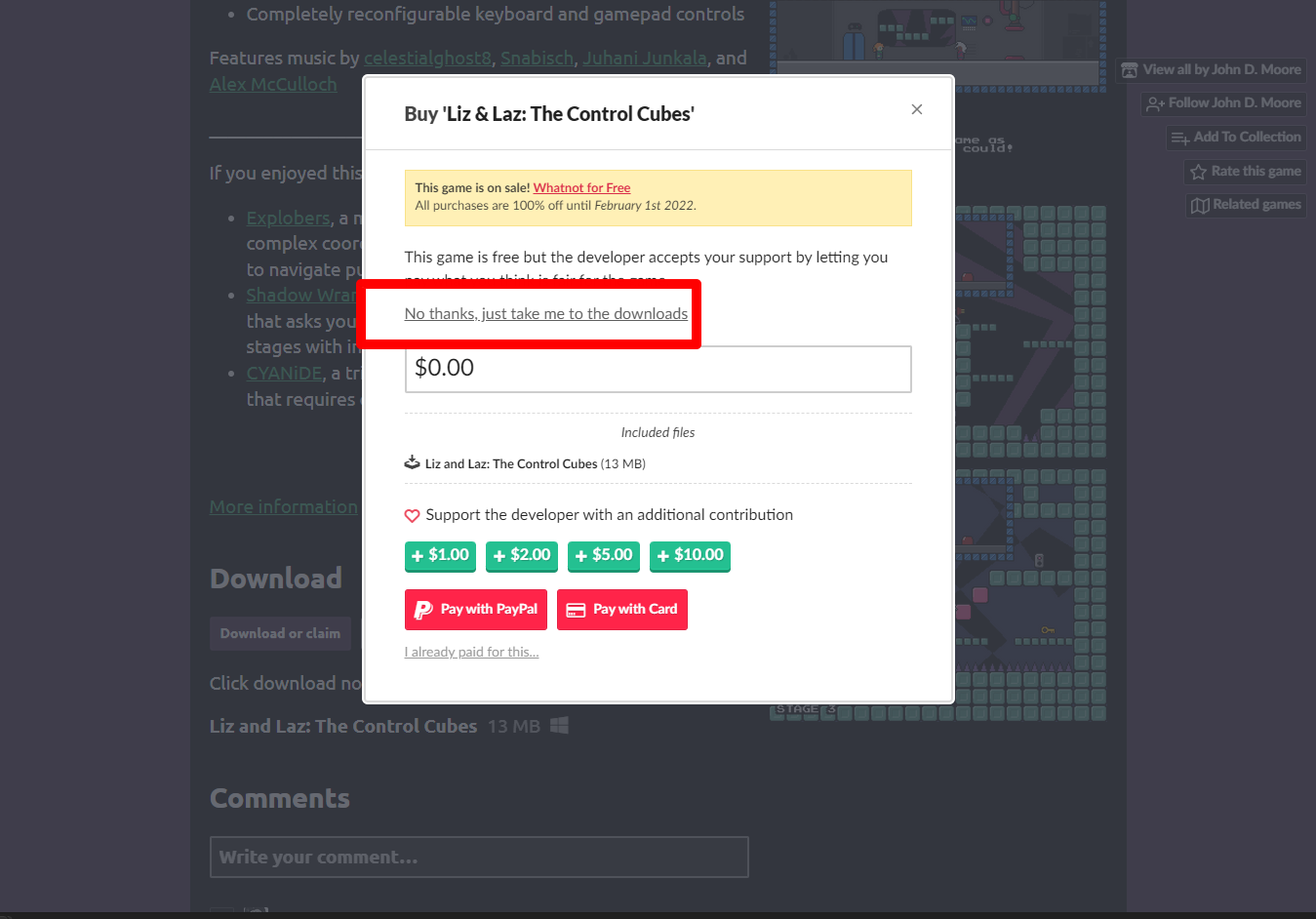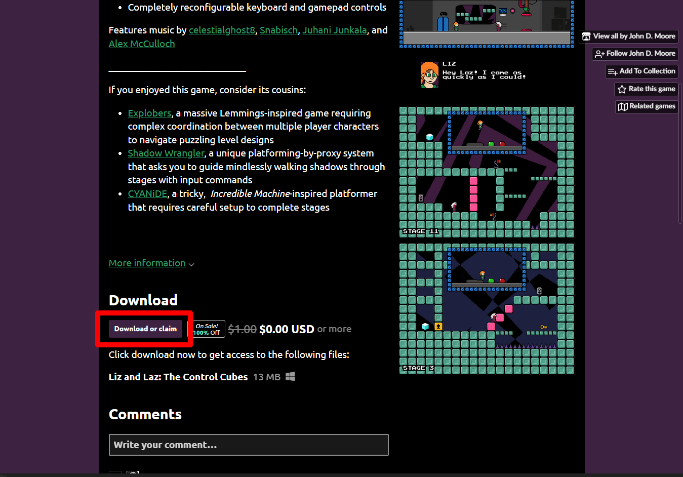 "Liz & Laz: The Control Cubes" 해당 항목에 있는 [Download] 버튼을 클릭하면 게임의 설치파일을 다운받을 수 있습니다.