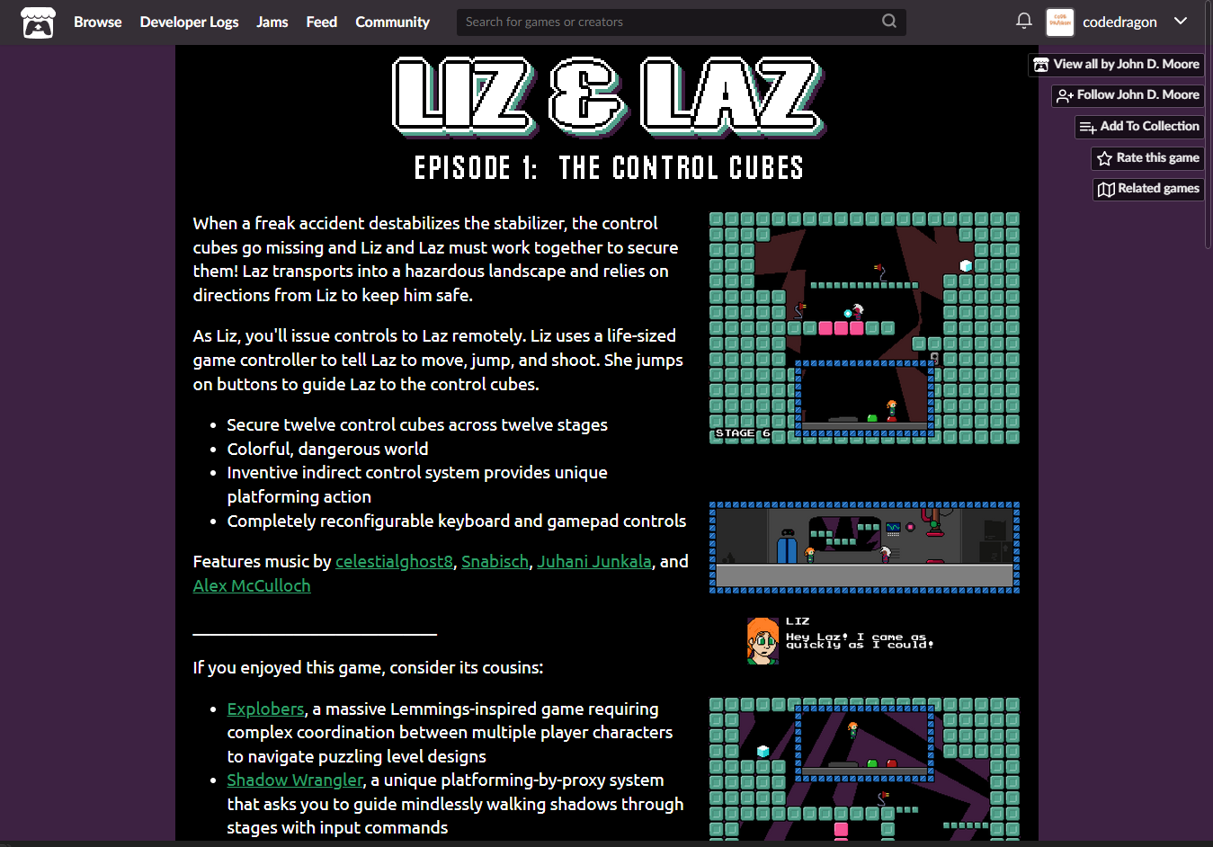 "Liz & Laz: The Control Cubes" 게임 페이지