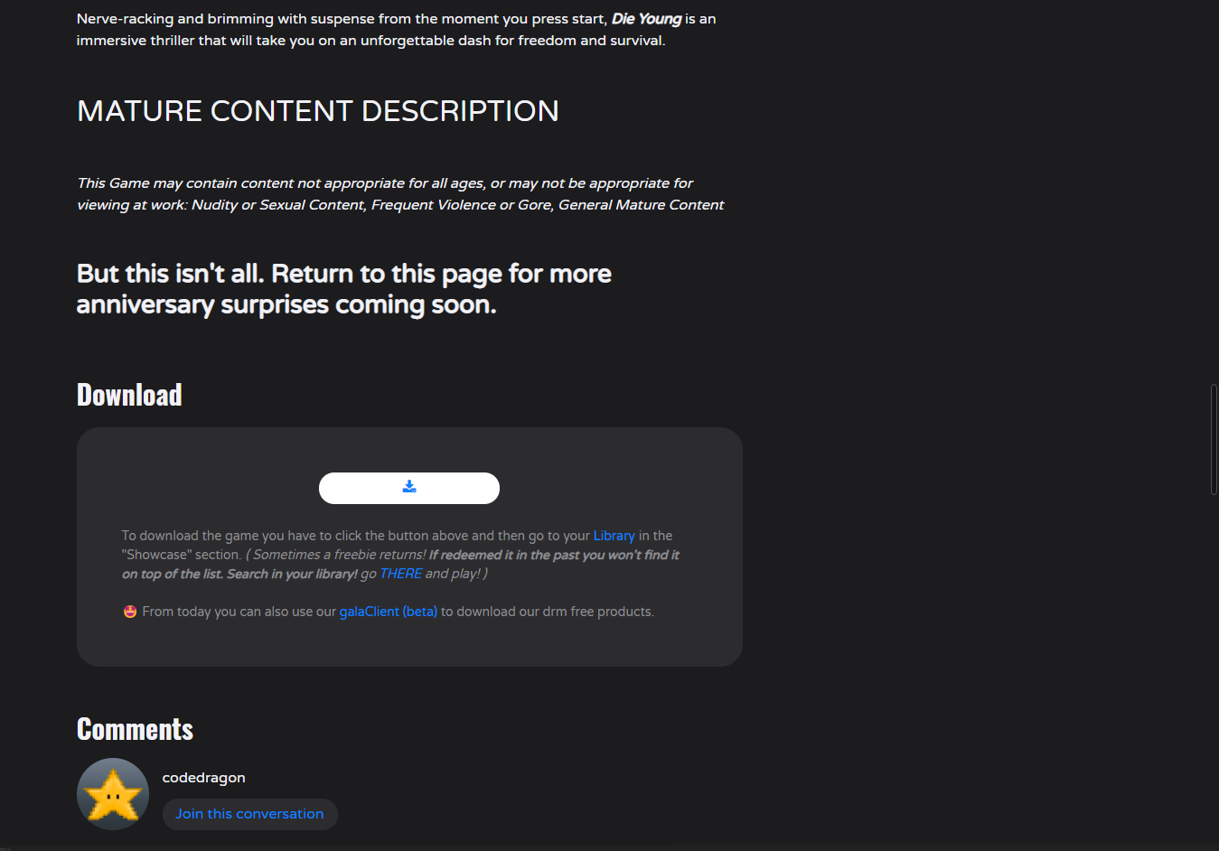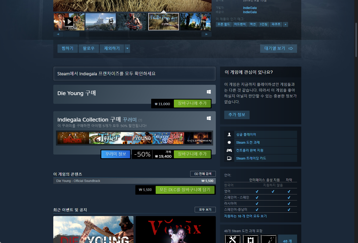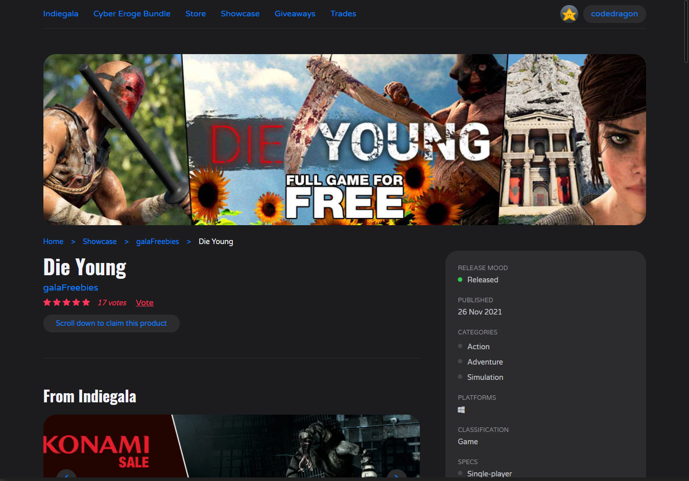 ₩20,500 -> ₩ 0(Free) Die Young 무료 - 인디갈라 indiegala 무료 소장 기회 기간한정 indiegala FREE GAME, Limited time (재배포)