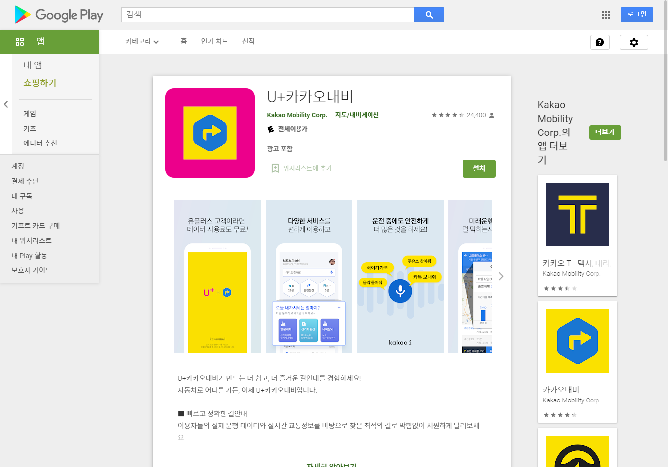 U+망을 사용하고 있다면 카카오내비를 데이터 요금 없이 사용할 수 있습니다.