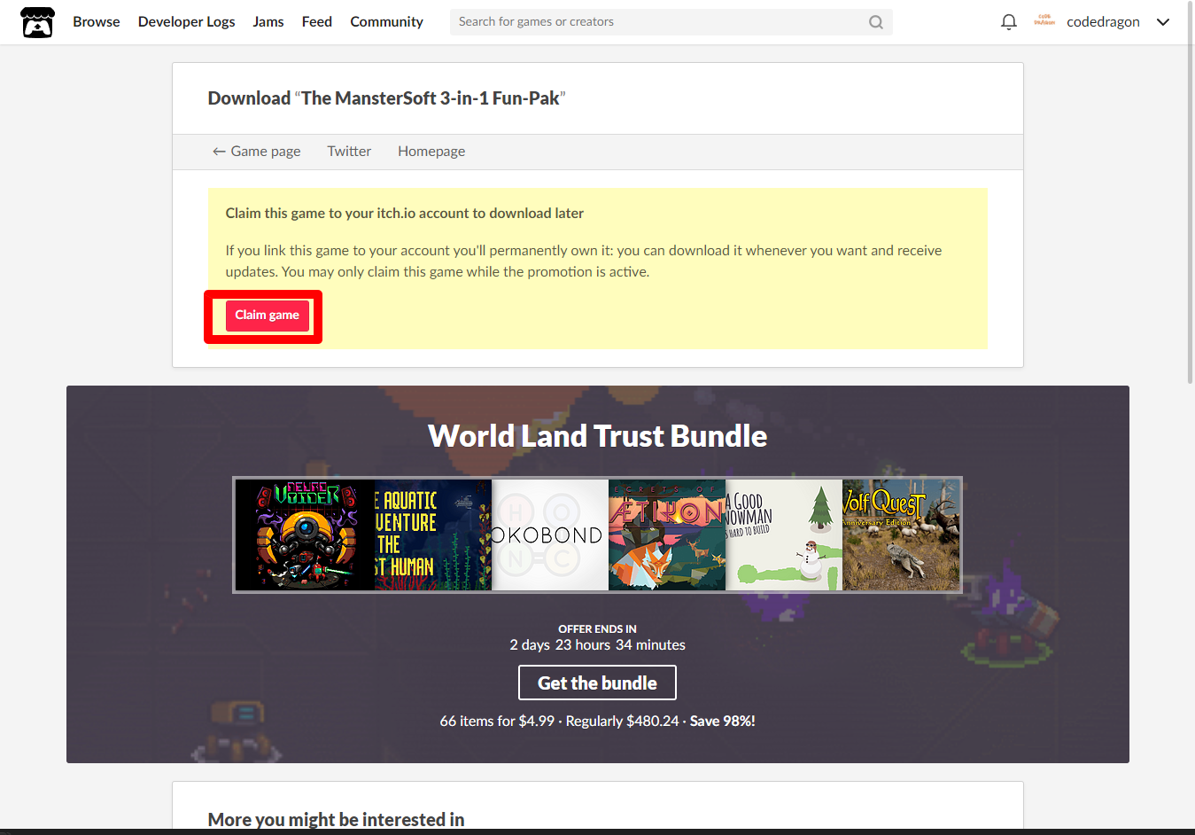 [Claim game]을 클릭하면 나의 게임 라이브러리에 추가되고 설치파일을 다운받을 수 있는 페이지로 이동됩니다.