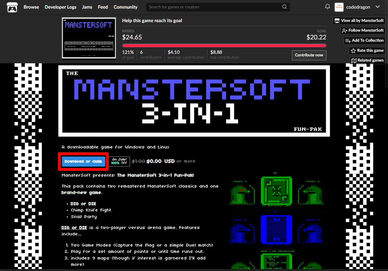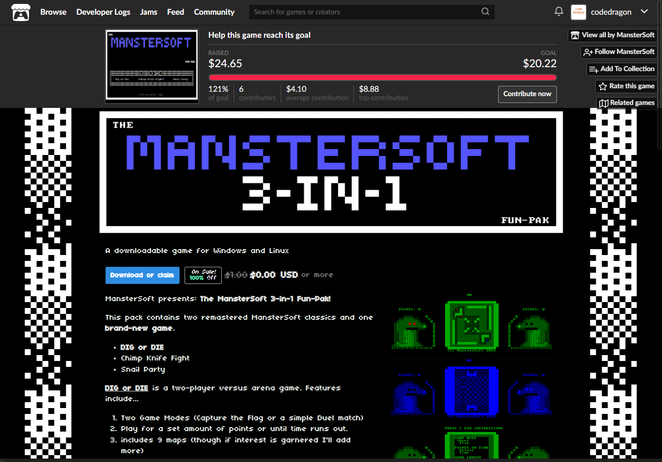₩1,179 -> ₩0(Free) The MansterSoft 3-in-1 Fun-Pak 맨스터소프트 쓰리인원 펀파크 무료로 받기 영구소장 - itch.io 잇치 닷 아이오 한시적 무료 소장하기