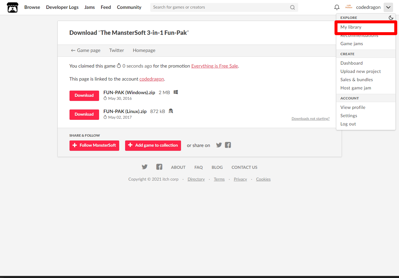 itch.io에서 받은 게임 확인해 설치파일 다운받아 보겠습니다.
