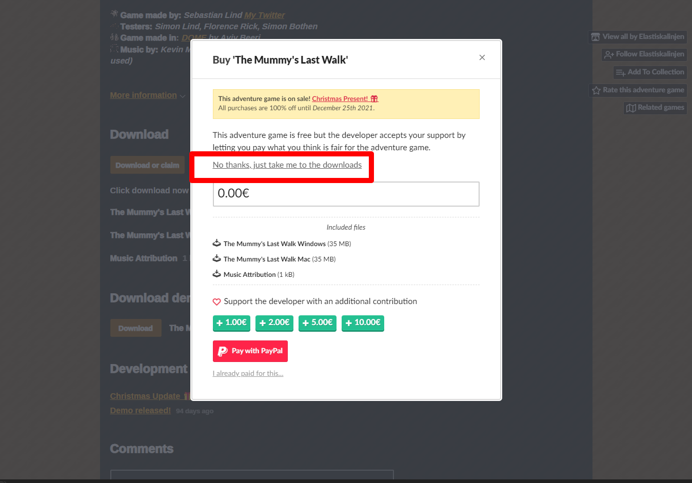 "The Mummy's Last Walk" 해당 항목에 있는 [Download] 버튼을 클릭하면 게임의 설치파일을 다운받을 수 있습니다.