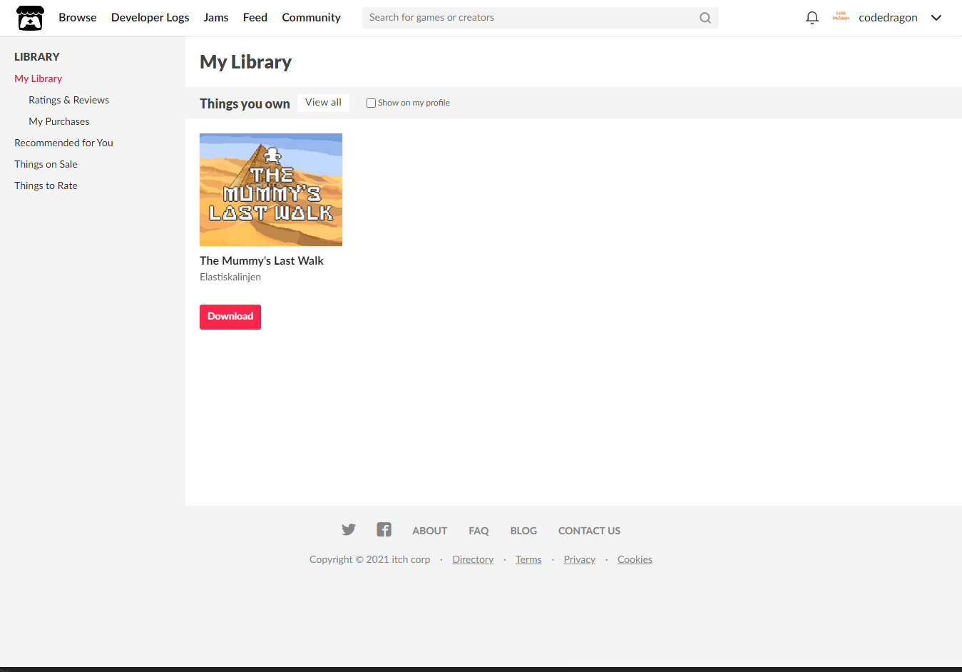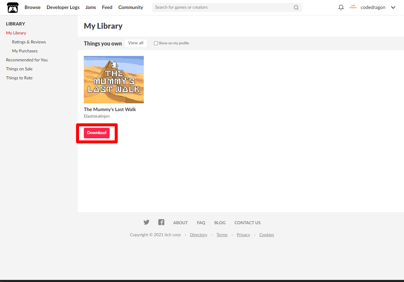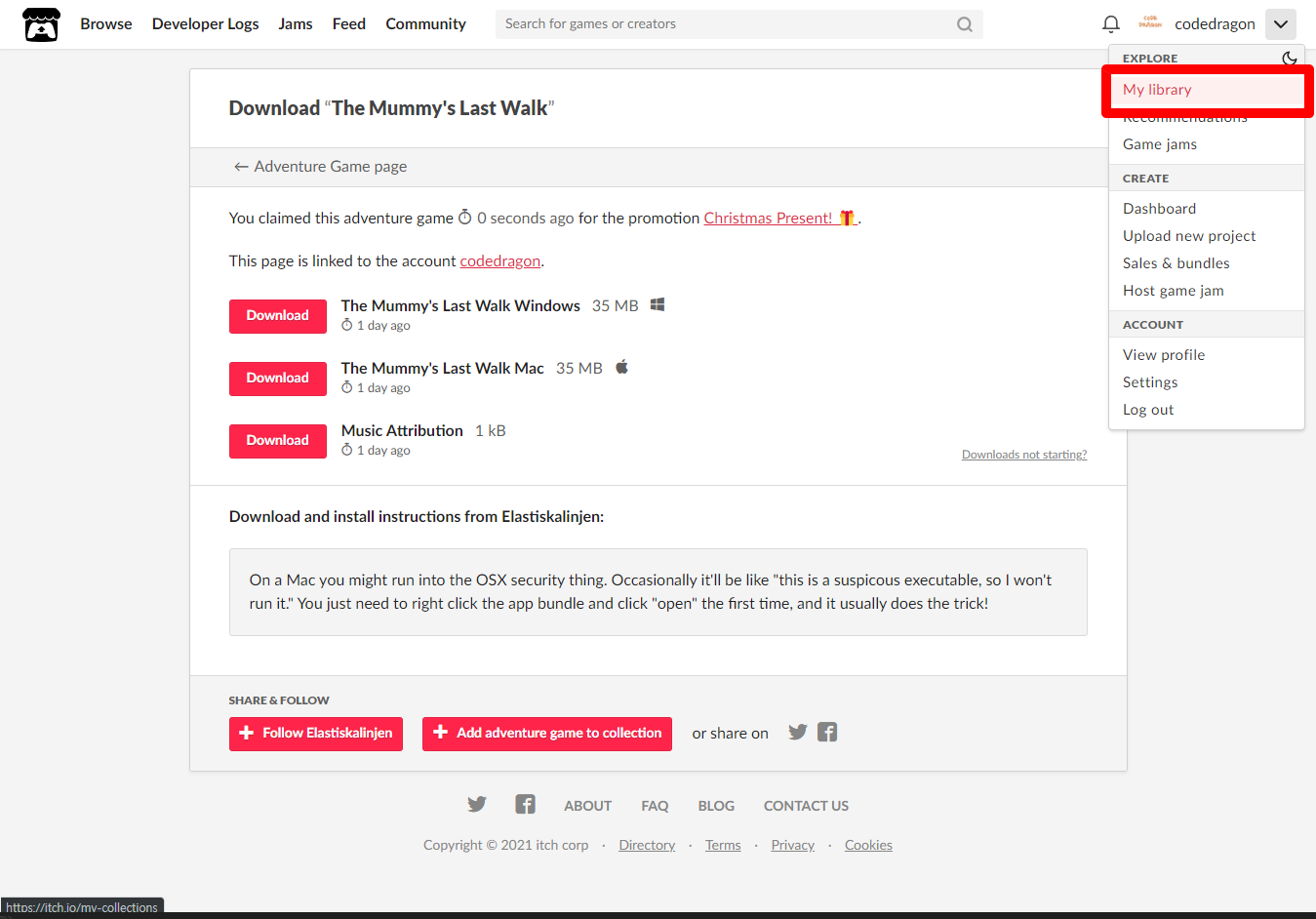 "My Lirary"에서 방금 받은 "The Mummy's Last Walk" 게임 항목을 확인할 수 있습니다.